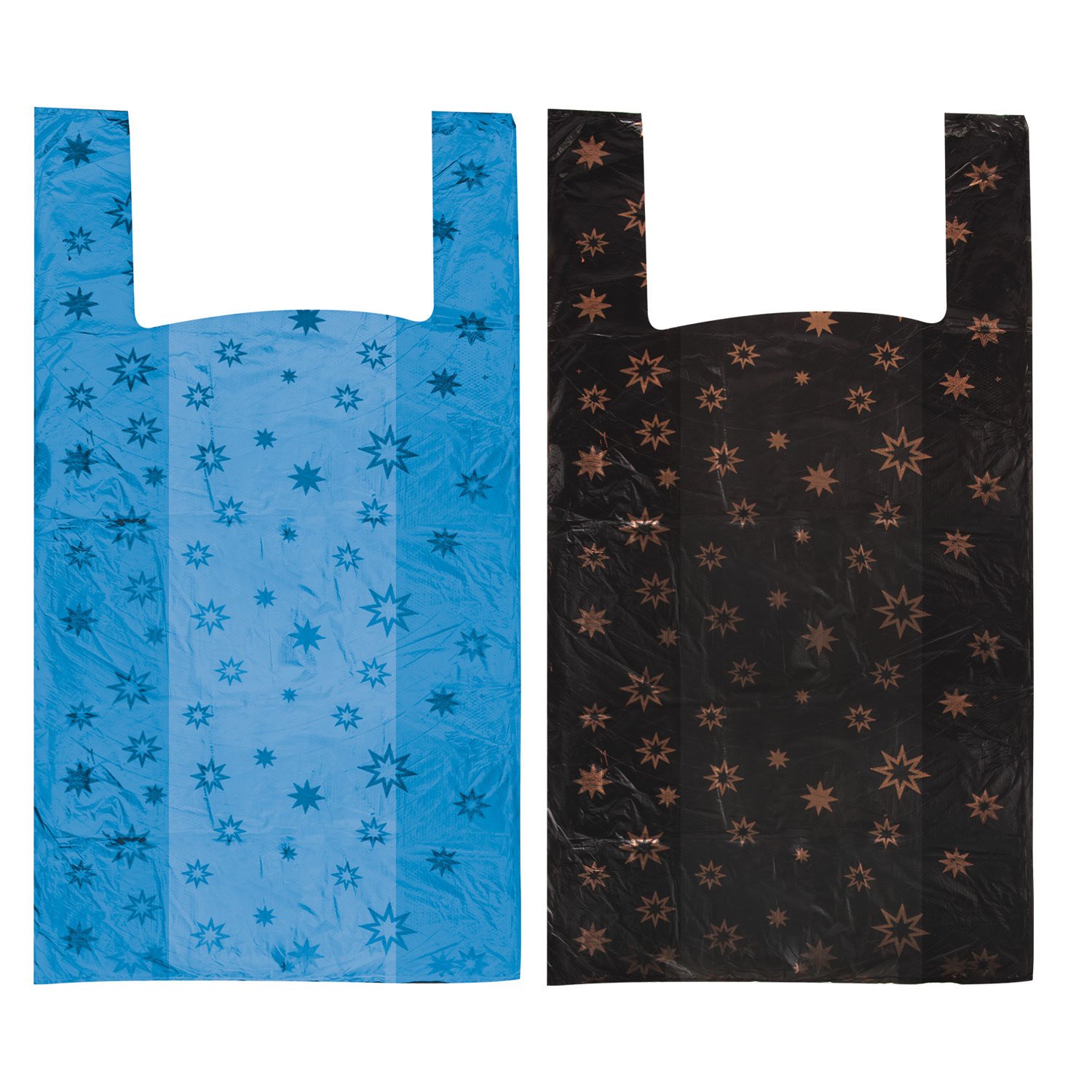 Пакеты "майка", КОМПЛЕКТ 100 шт., 31+18х59 см, ПНД, "Звезды", 18 мкм