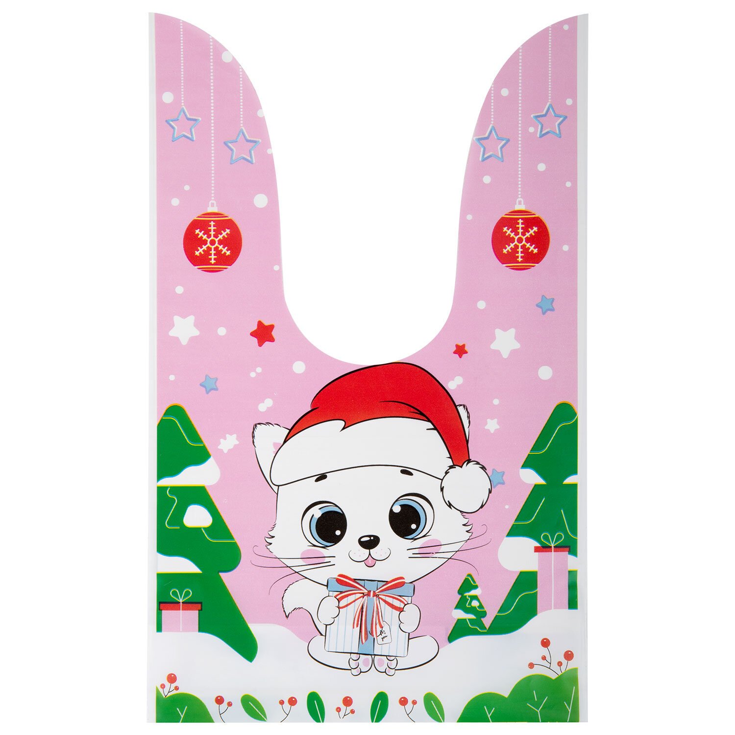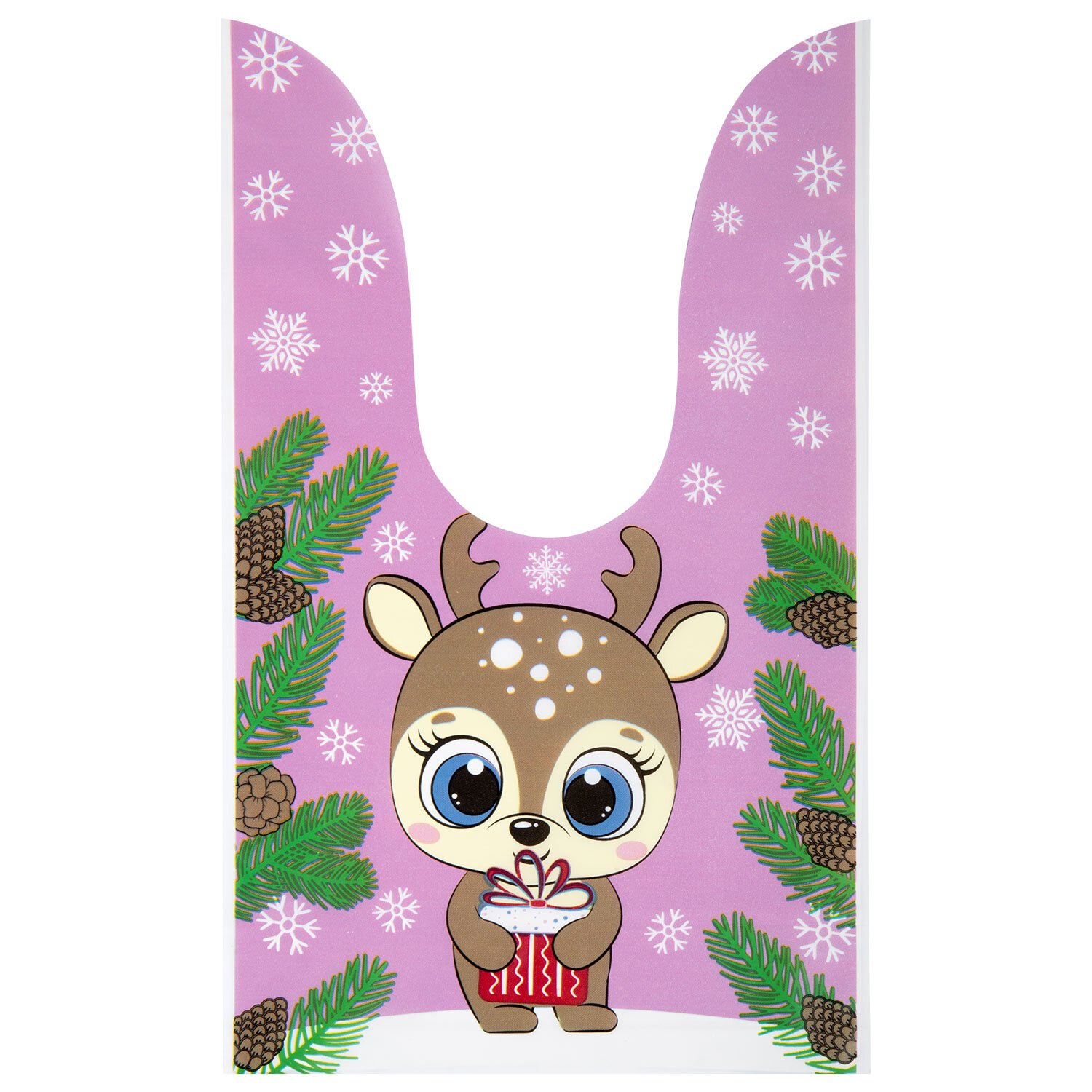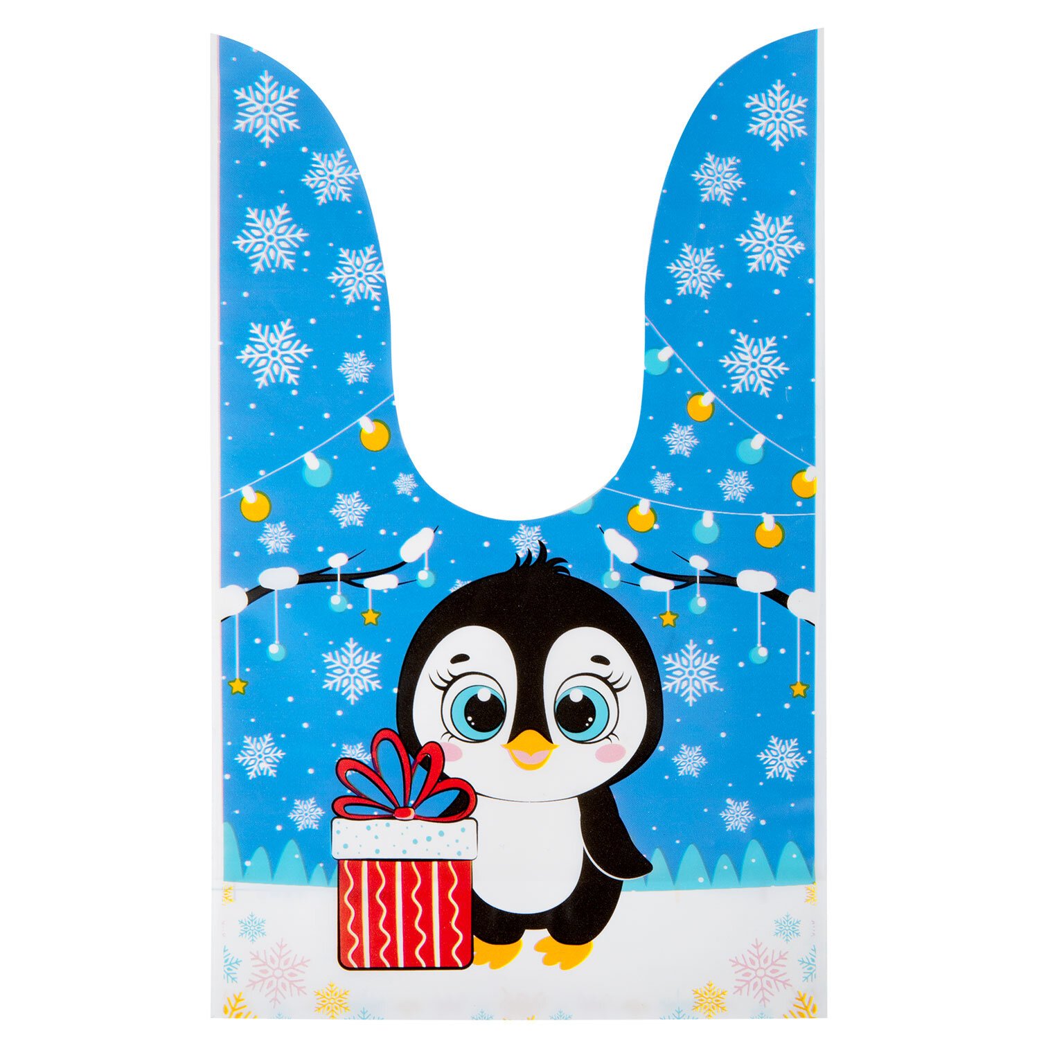 Набор из 35-и подарочных пакетиков, изготовленных из полиэтилена, имеет удобную форму "ушек" для завязывания. Также в комплекте идут металлические зажимы, которые надежно фиксируют пакетики в закрытом виде. Размер каждого пакета — 13,8х23 см, что позволяет легко поместить внутрь небольшие подарки и сувениры. На пакетиках изображены милые зверюшки в новогодней тематике — пингвины, олени, зайчики и другие герои зимней сказки, которые уже готовы к встрече Нового года.