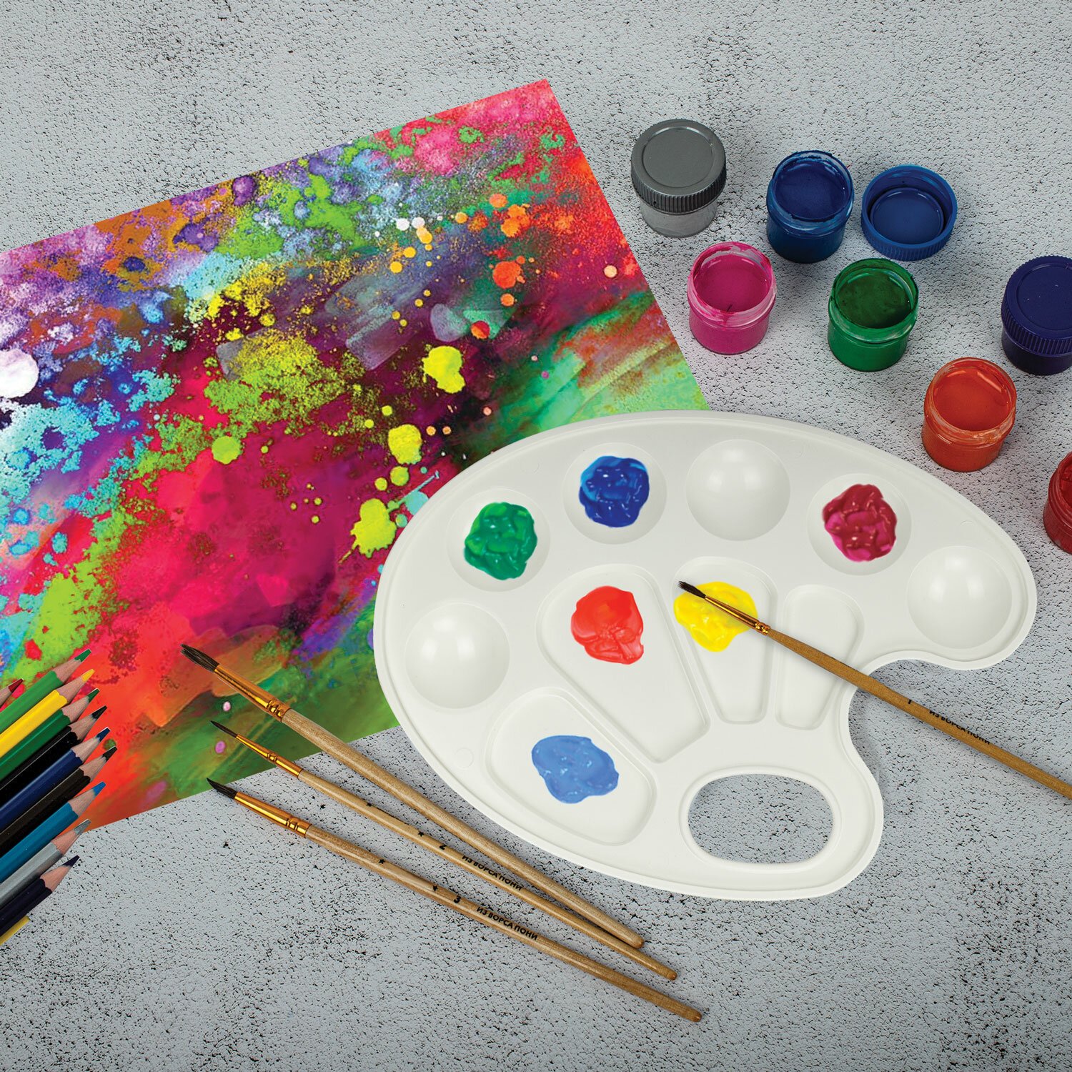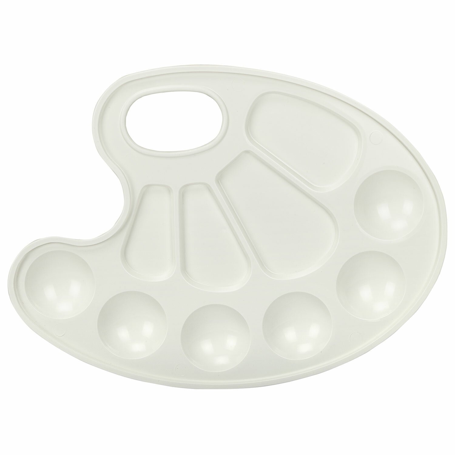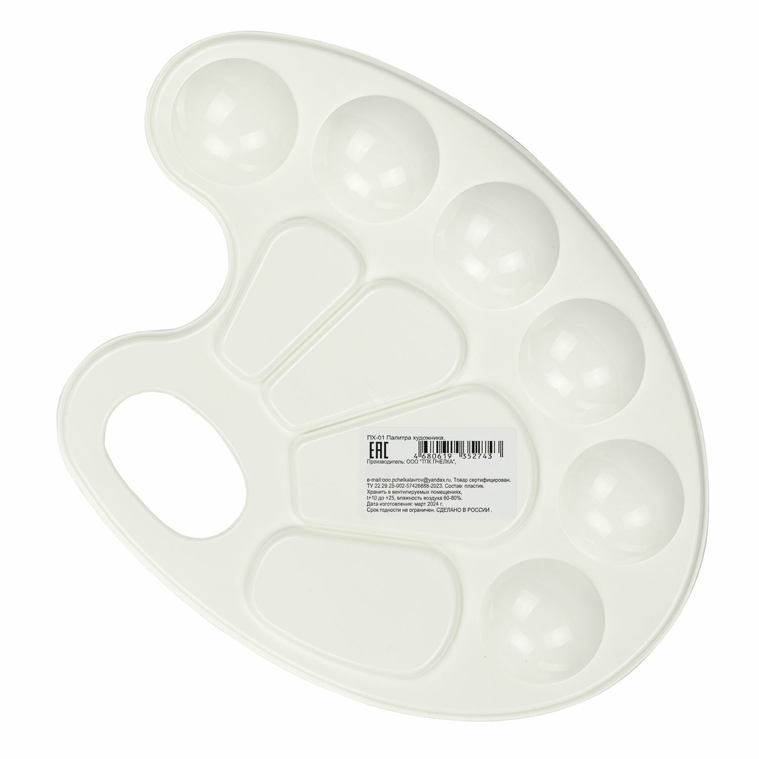 Палитра для рисования ПИФАГОР белая, овальная, 6 ячеек для красок и 4 ячейки для смешивания, 227805