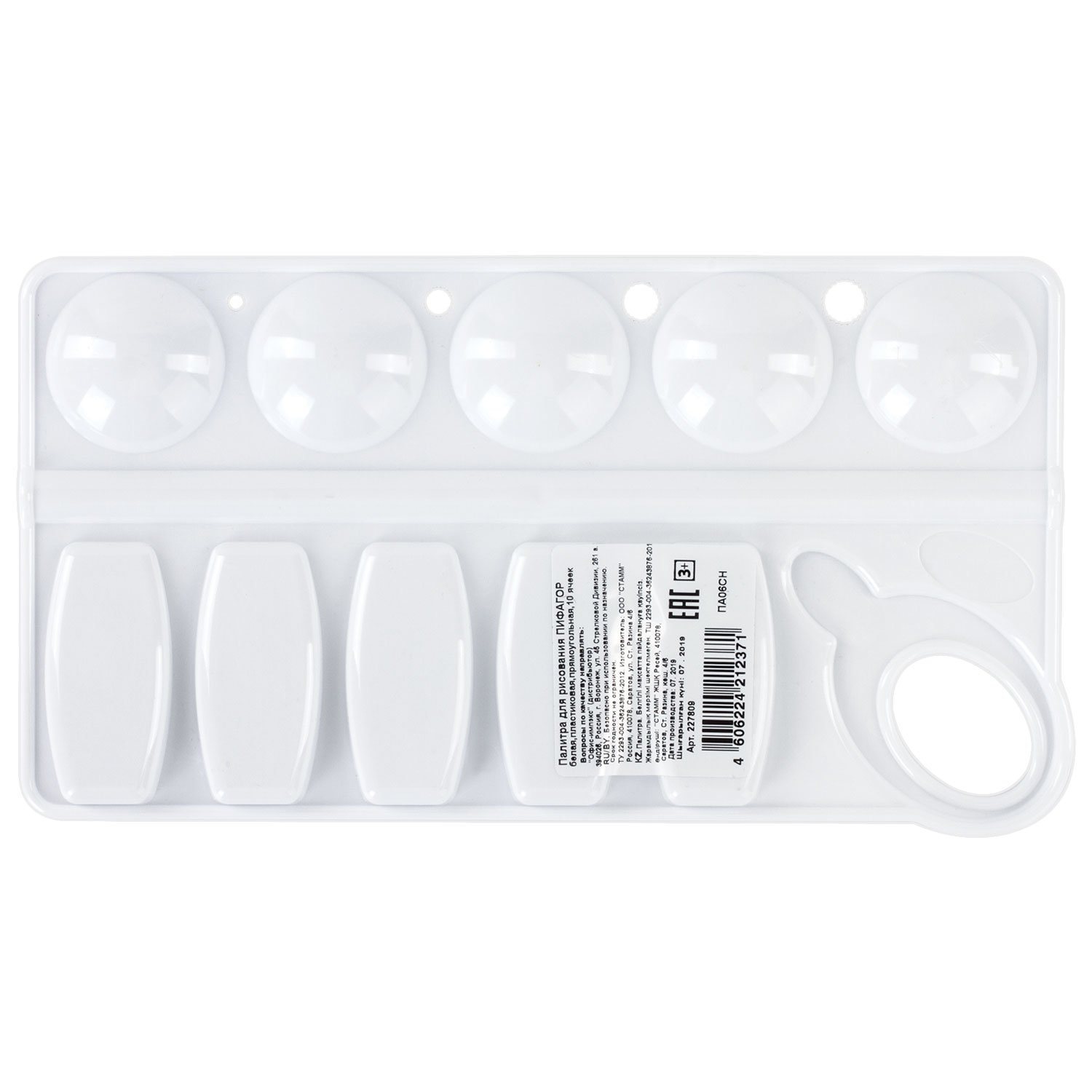 Палитра для рисования ПИФАГОР белая, пластиковая, прямоугольная, 10 ячеек, 227809