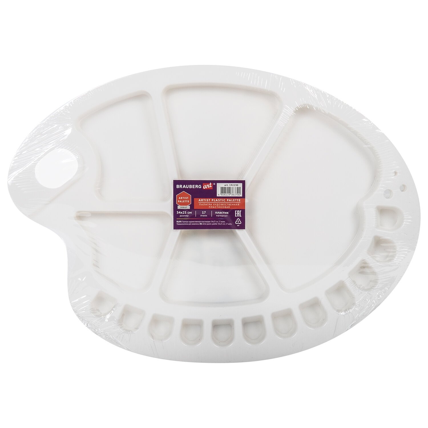 Палитра художественная пластиковая овальная 34х25 см, 17 ячеек, BRAUBERG ART DEBUT, 192230
