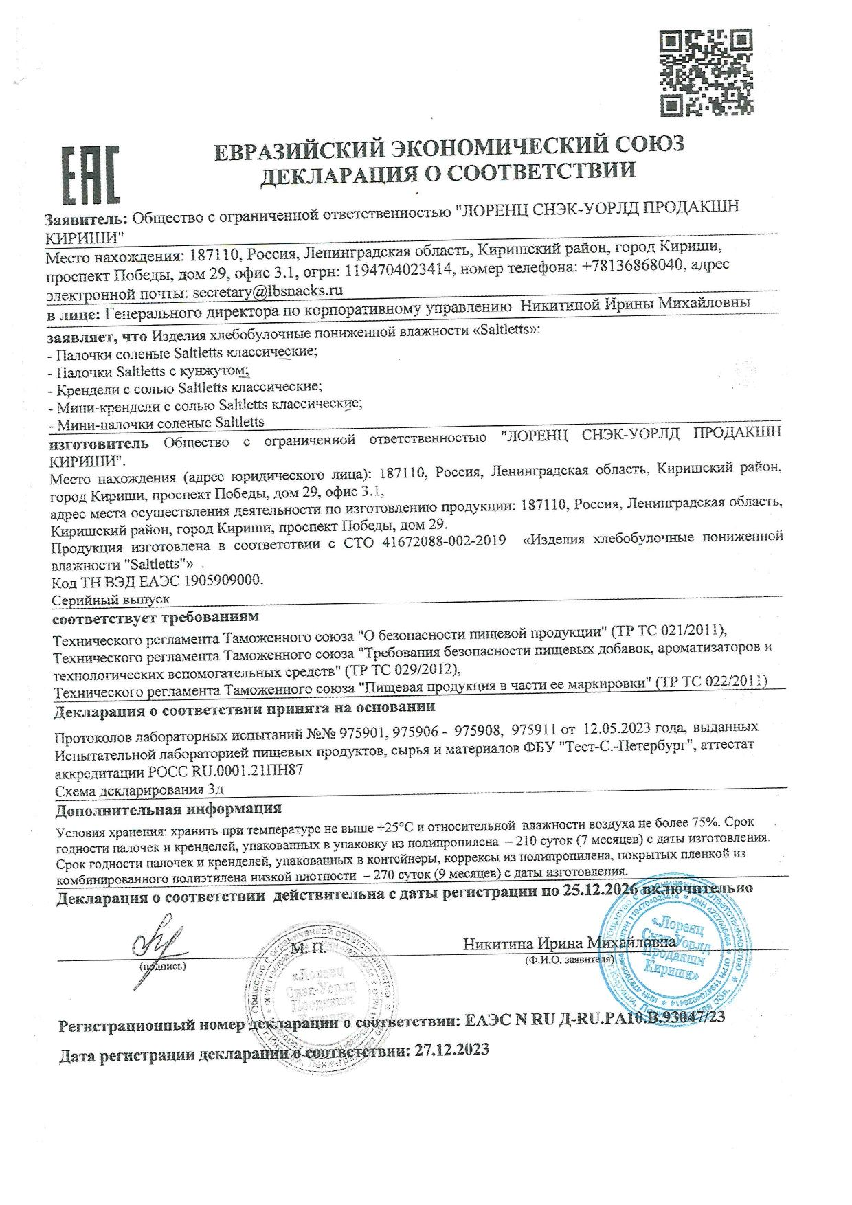 | Фирма-производитель | ООО Лоренц Снэк-Уорлд Раша |