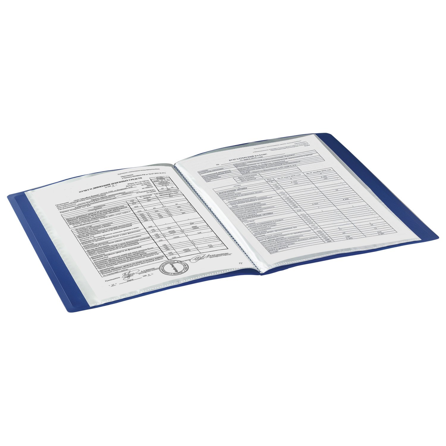 На корешке имеется карман для маркировки содержимого. Папка изготовлена из качественного пластика толщиной 0,6 мм с антибликовой фактурой, а ширина корешка составляет 8 мм. Содержит 10 вкладышей, позволяющих хранить документы формата А4 и обеспечивающих их надежную защиту от попадания влаги, пыли и прочих повреждений. Поставляется в индивидуальной упаковке.