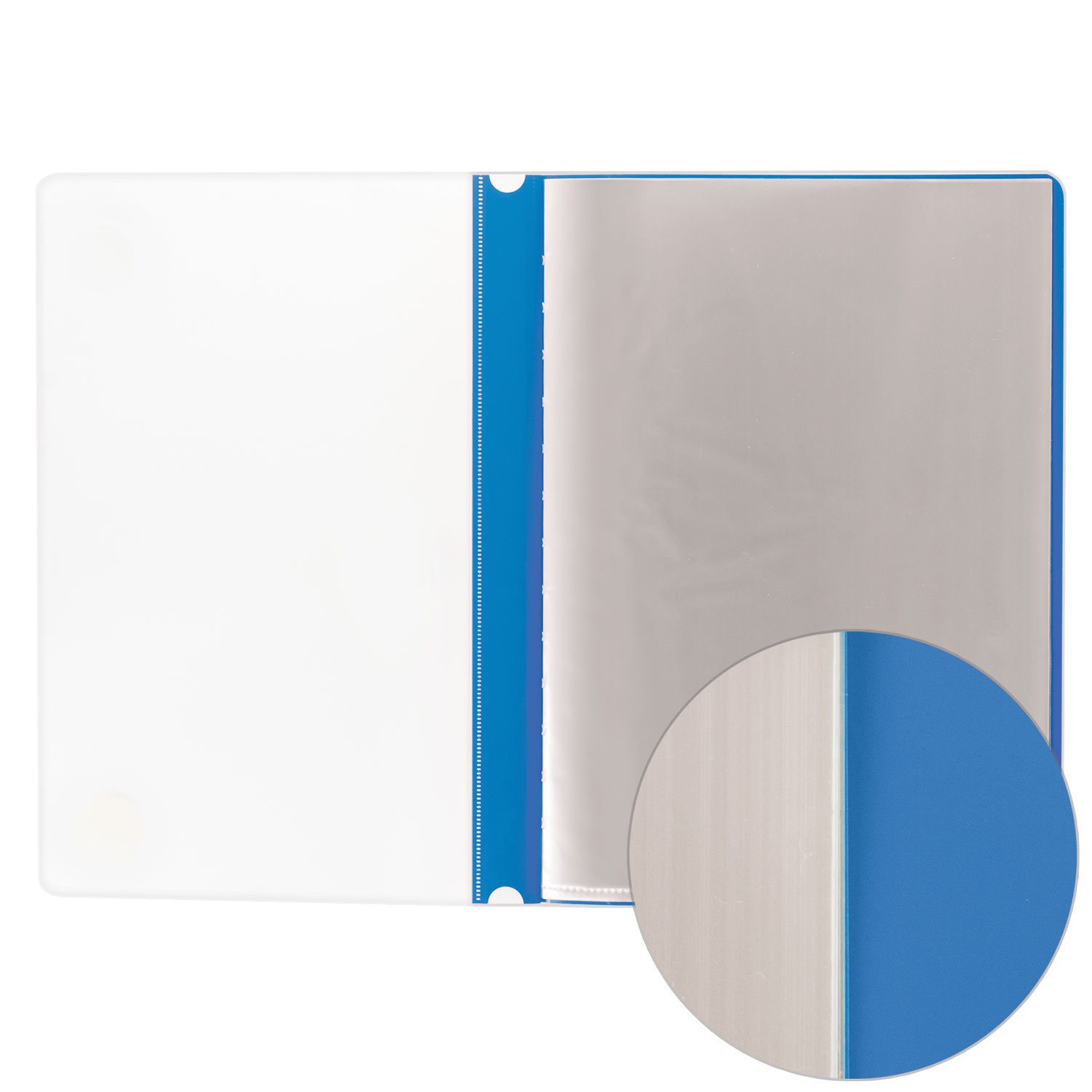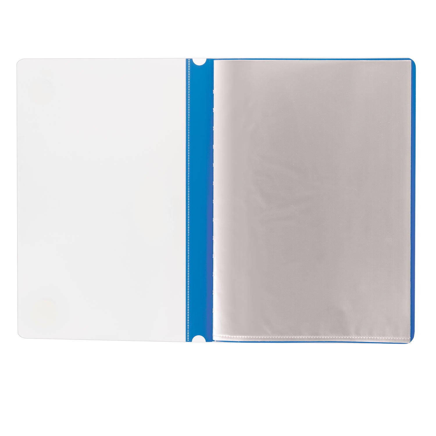 На корешке имеется карман для маркировки содержимого. Папка изготовлена из пластика толщиной 0,16 мм с антибликовой фактурой. Содержит 10 вкладышей, позволяющих хранить документы формата А4 и обеспечивающих их надежную защиту от попадания влаги, пыли и прочих повреждений, а универсальная перфорация на обложке папки позволяет подшивать ее в папки-регистраторы, папки со скоросшивателями и т.д.