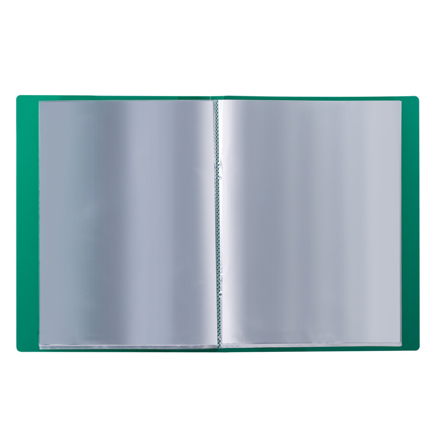 На корешке имеется карман для маркировки содержимого. Папка изготовлена из качественного пластика толщиной 0,6 мм с антибликовой фактурой, а ширина корешка составляет 16 мм. Содержит 20 вкладышей, позволяющих хранить документы формата А4 и обеспечивающих их надежную защиту от попадания влаги, пыли и прочих повреждений. Поставляется в индивидуальной упаковке.