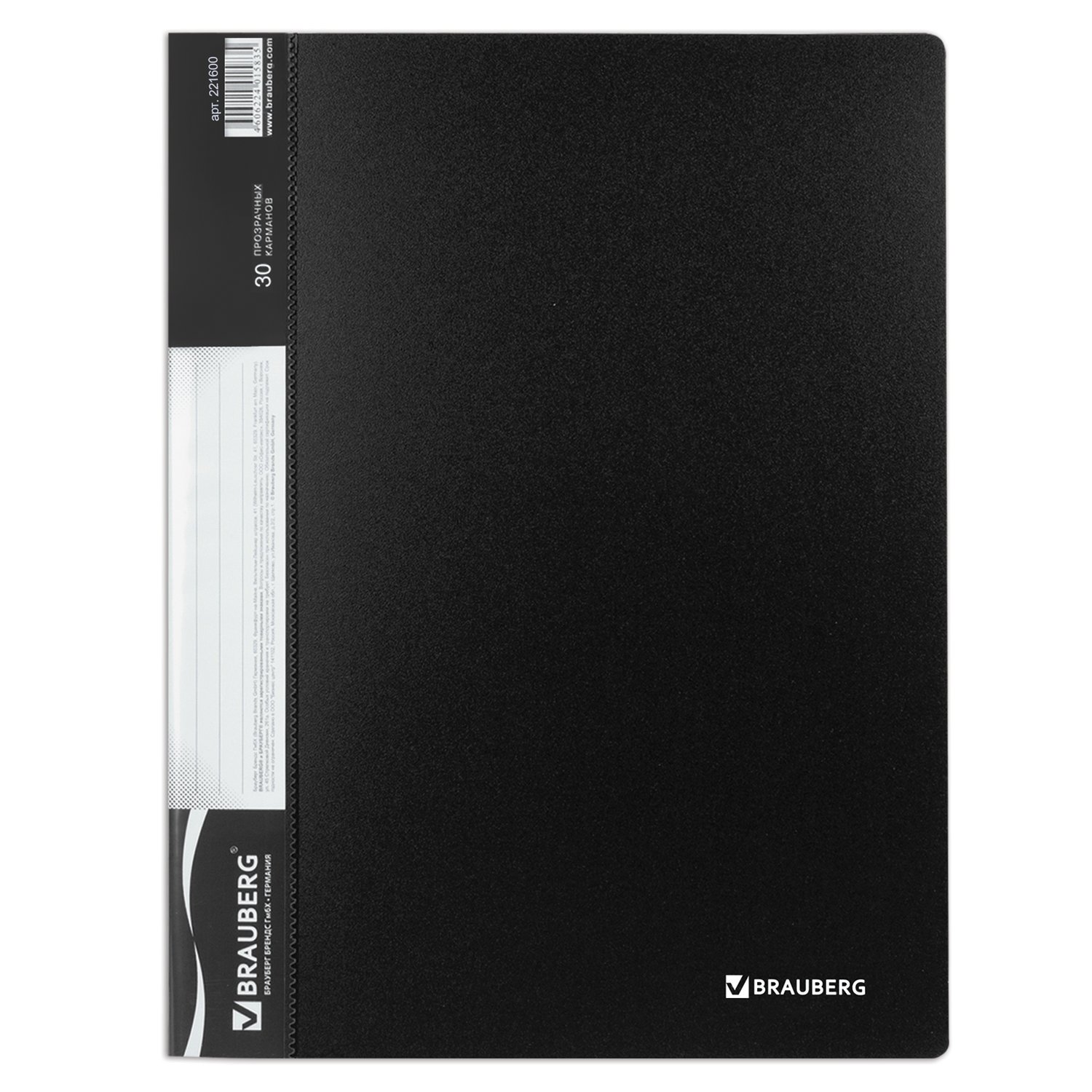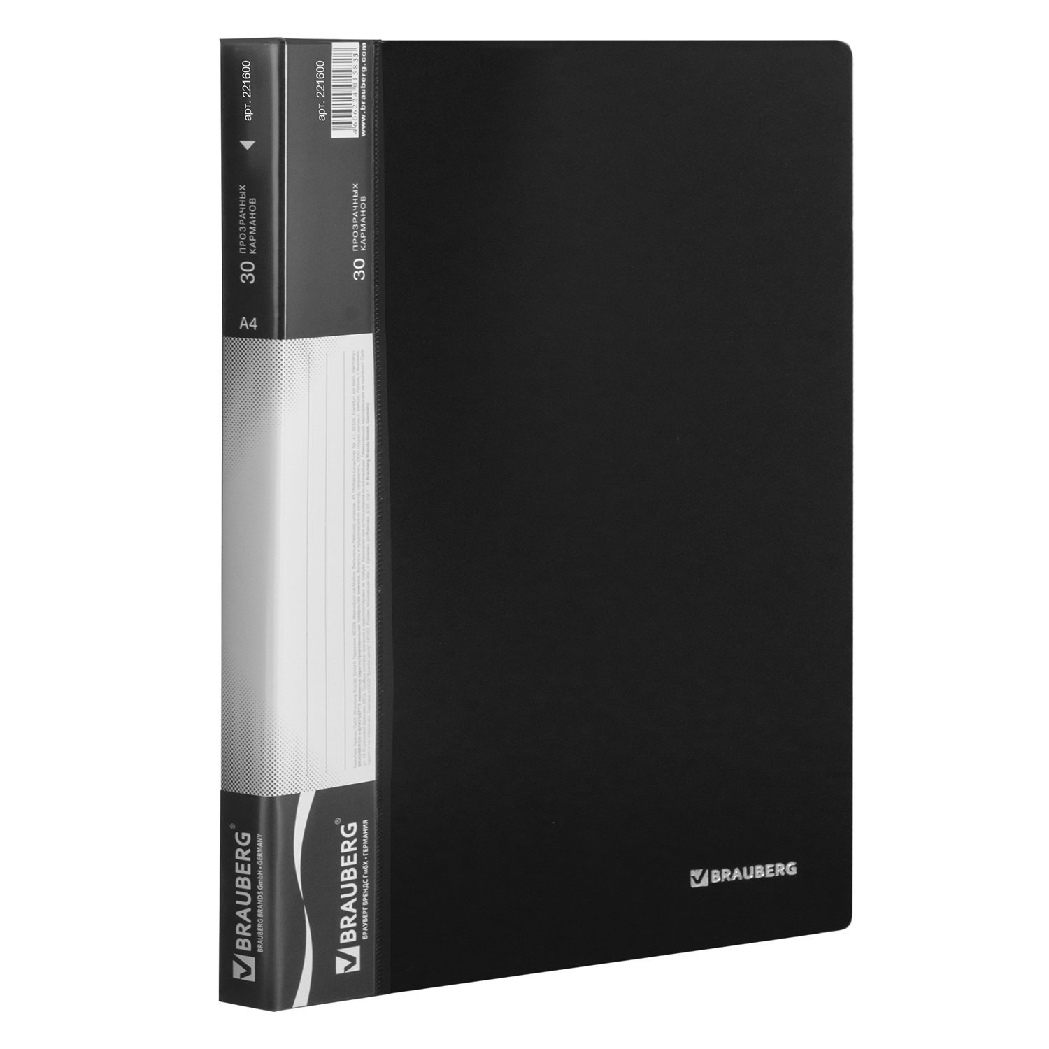 Папка 30 вкладышей BRAUBERG стандарт, черная, 0,6 мм, 221600
