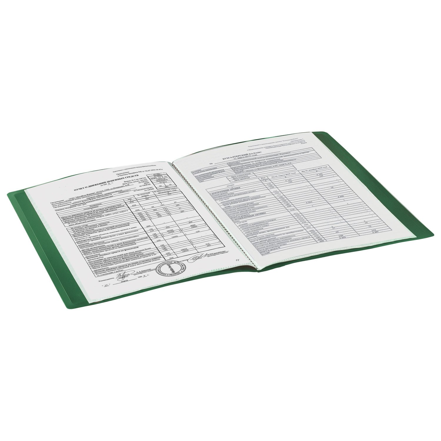 Для маркировки содержимого на корешок наклеена этикетка. Папка изготовлена из пластика толщиной 0,5 мм с антибликовой фактурой, а ширина корешка составляет 20 мм. Содержит 30 вкладышей, позволяющих хранить документы формата А4 и обеспечивающих их надежную защиту от попадания влаги, пыли и прочих повреждений.