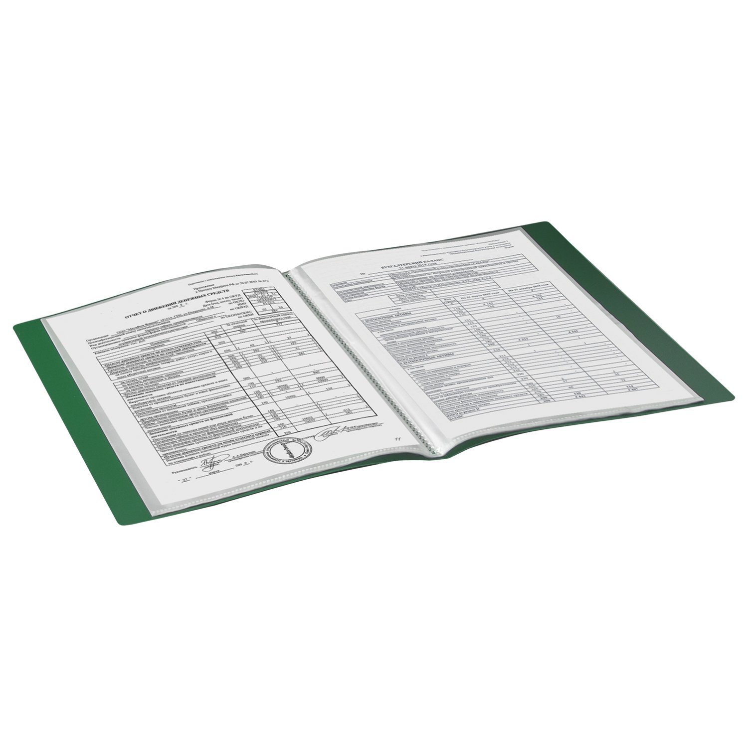 На корешке имеется карман для маркировки содержимого. Папка изготовлена из качественного пластика толщиной 0,7 мм с антибликовой линейной фактурой, а ширина корешка составляет 25 мм. Содержит 40 антибликовых вкладышей, позволяющих хранить документы формата А4 и обеспечивающих их надежную защиту от попадания влаги, пыли и прочих повреждений. Поставляется в индивидуальной упаковке.