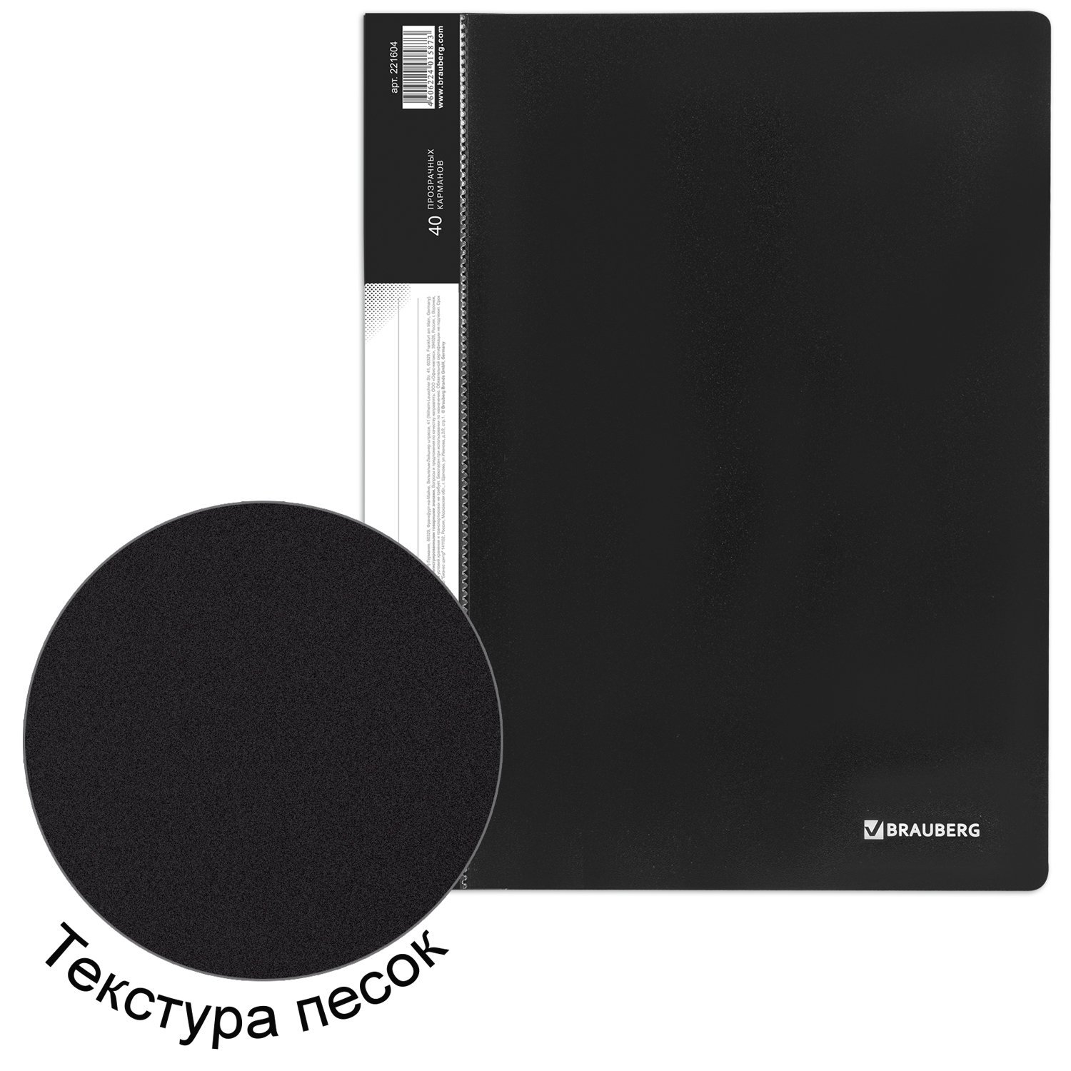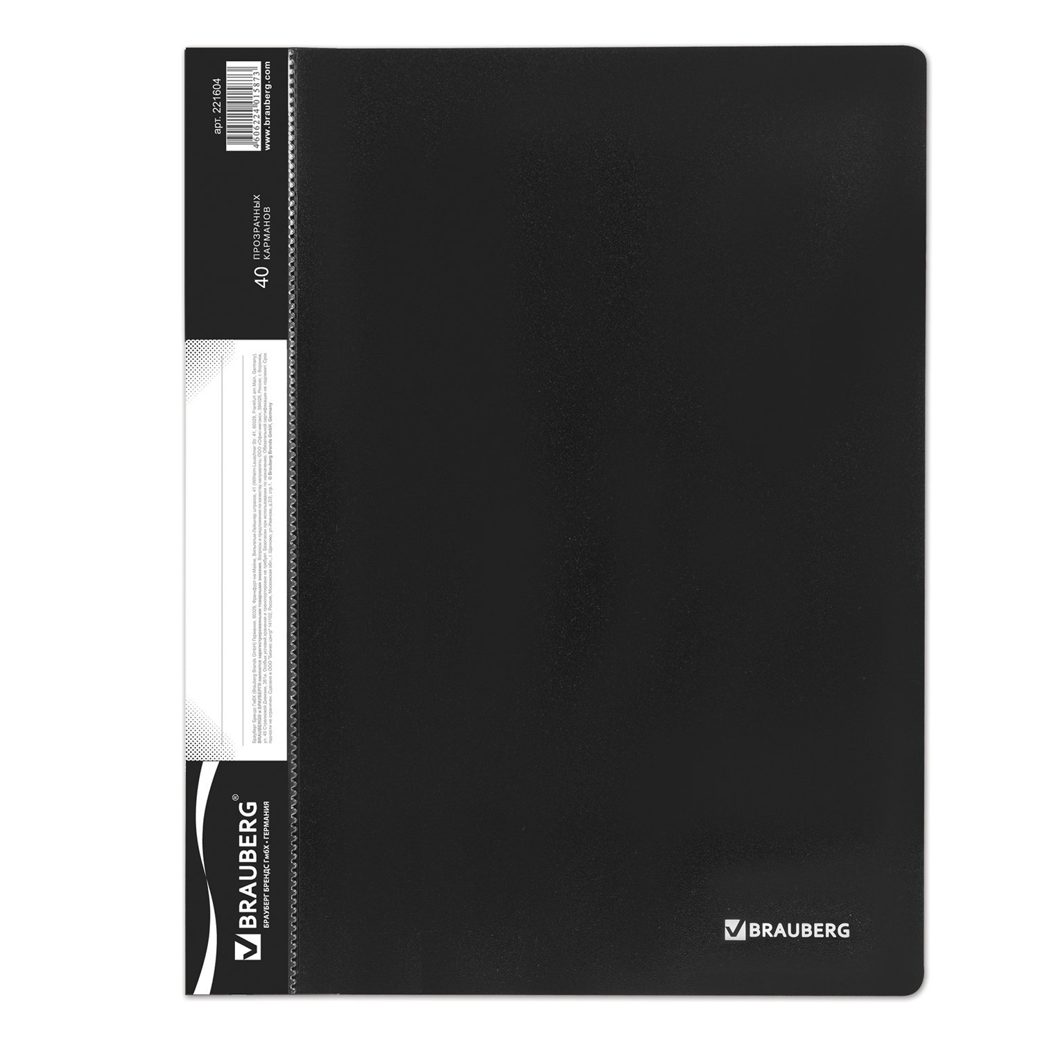 Папка 40 вкладышей BRAUBERG стандарт, черная, 0,7 мм, 221604