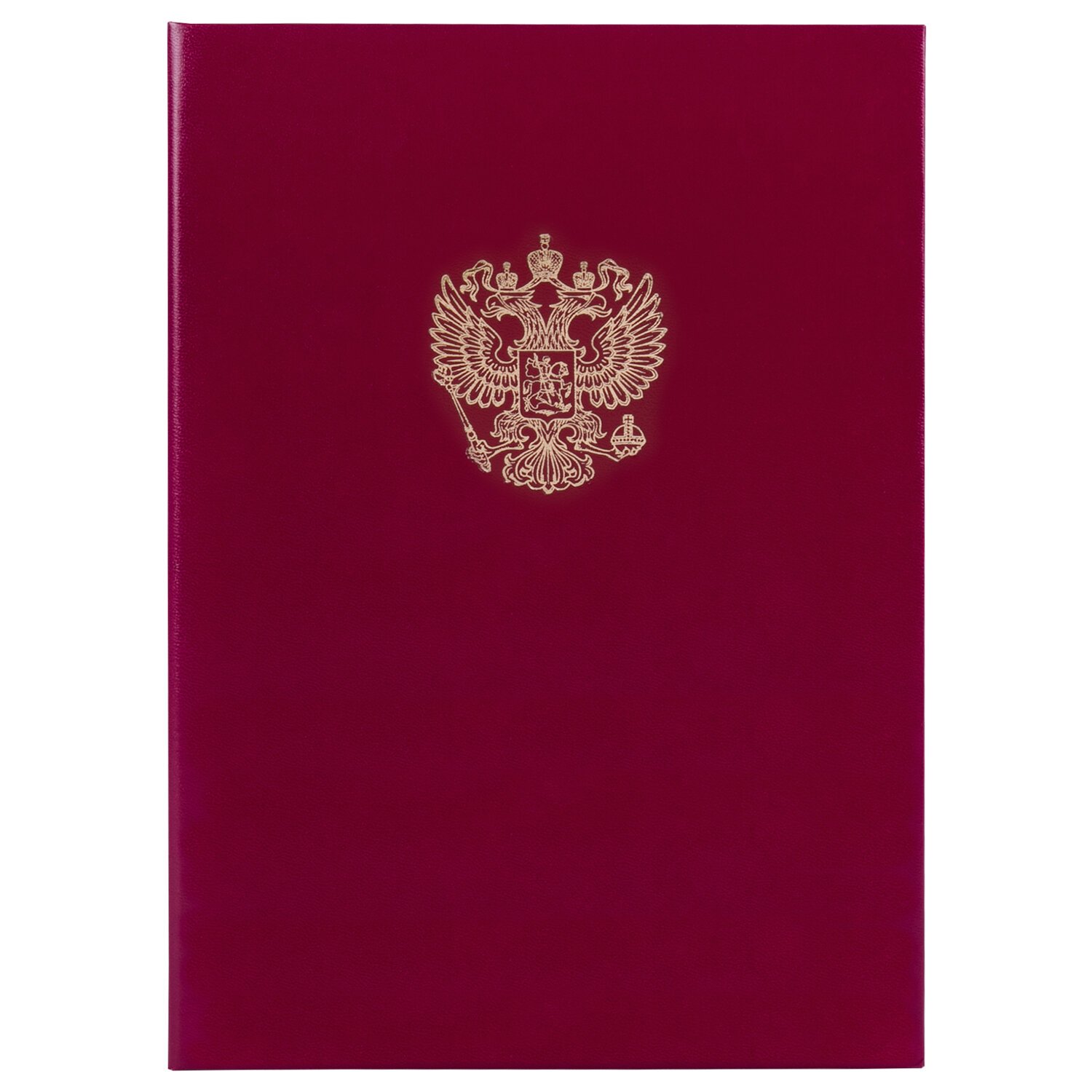 Папка адресная бумвинил бордовый, "Герб России", формат А4, STAFF, 122741