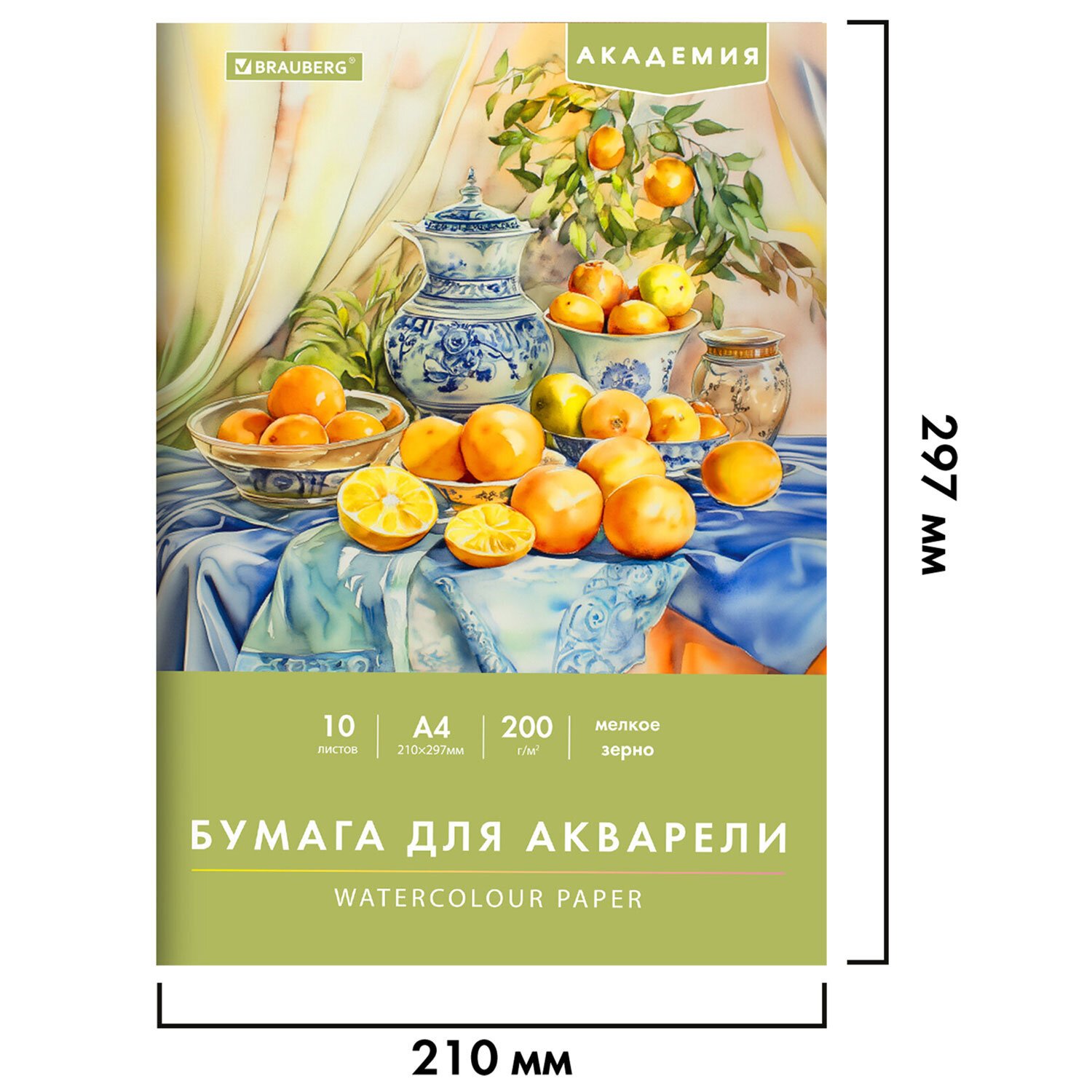 Папка для акварели А4, 10л., 200 г/м2, 210х297мм, BRAUBERG АКАДЕМИЯ, "Апельсины", 117743
