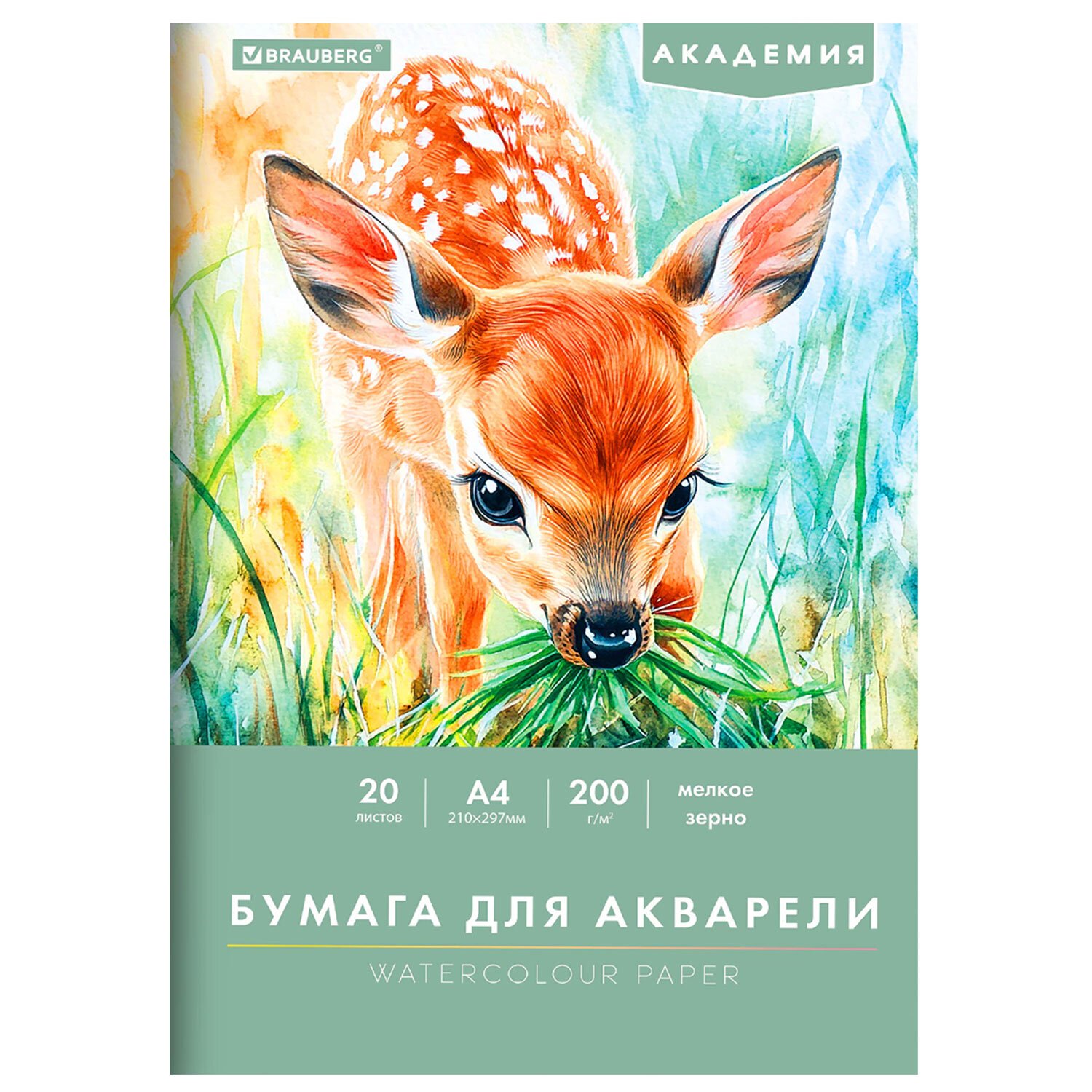 Папка для акварели А4, 20л., 200 г/м2, 210х297мм, BRAUBERG АКАДЕМИЯ, "Оленёнок", 117746