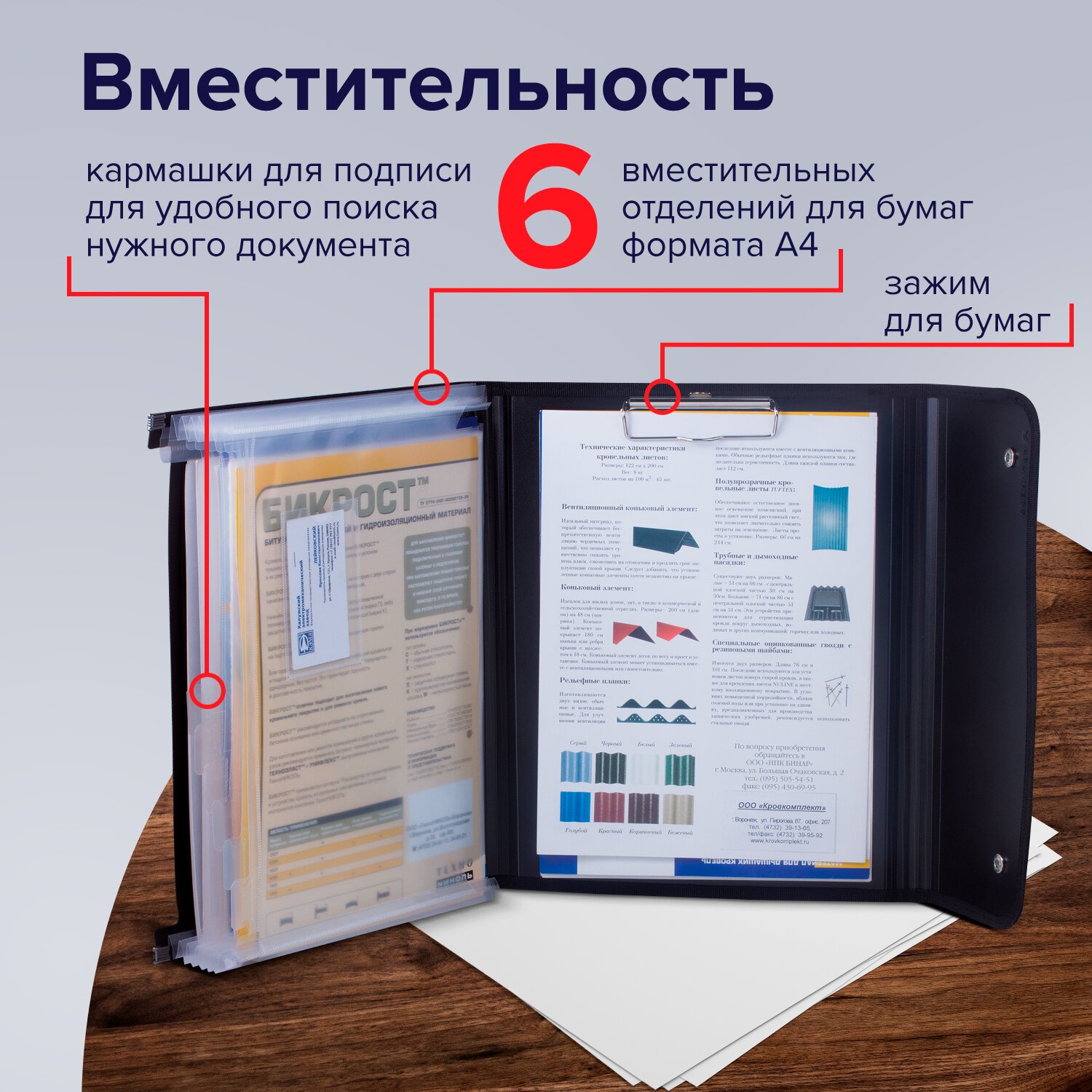 Папка для конференций BRAUBERG, А4, 6 отделений, черная, Россия, 226015