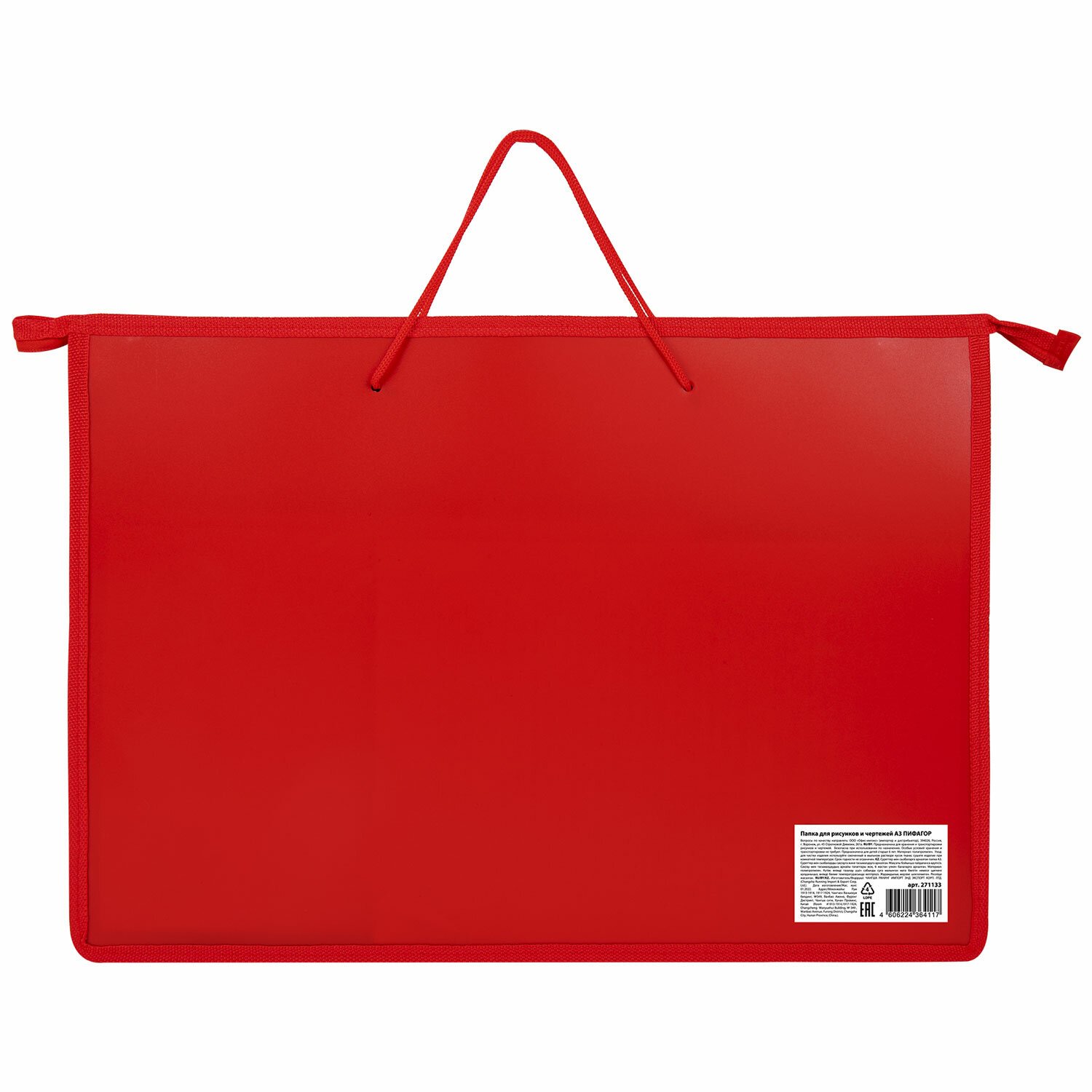 Папка для рисунков и чертежей ПИФАГОР А3, пластик, красная, 271133