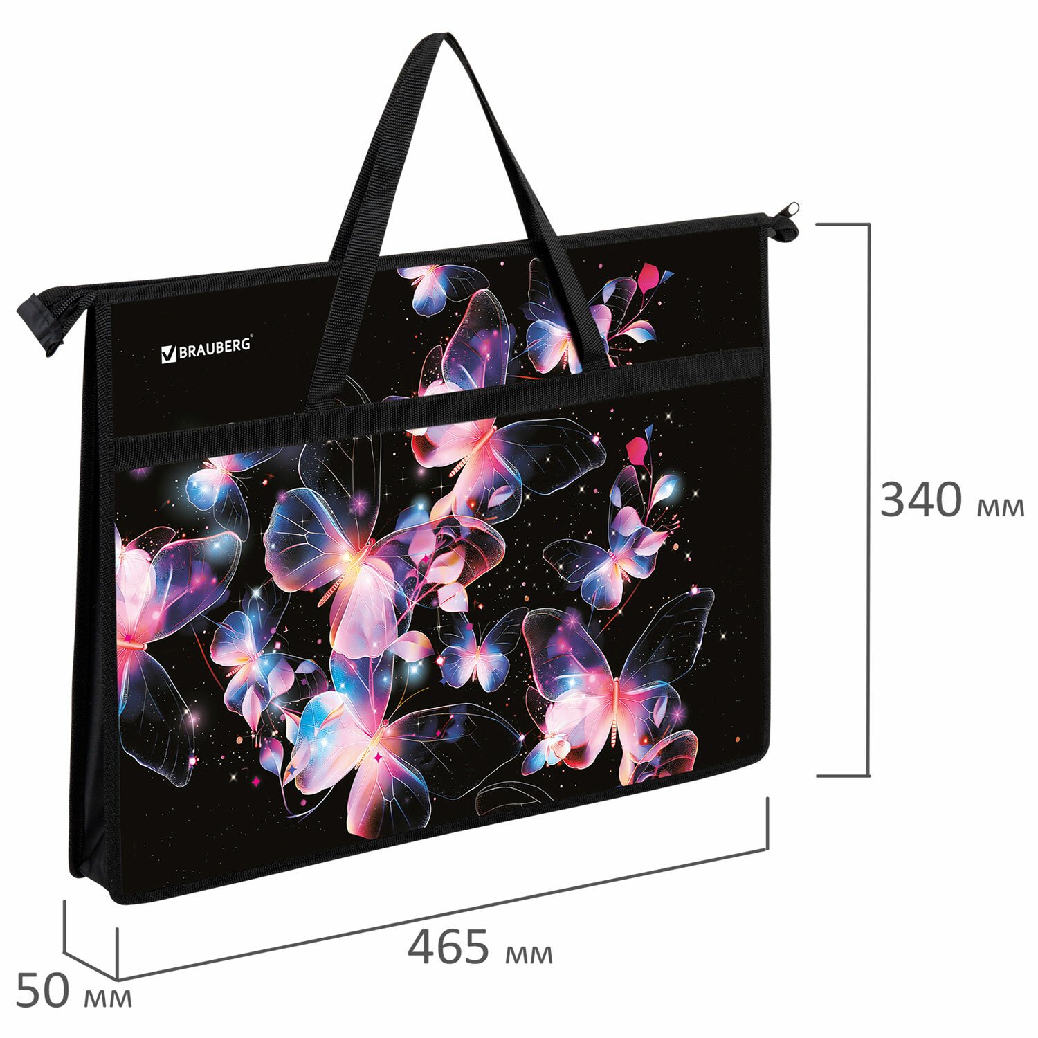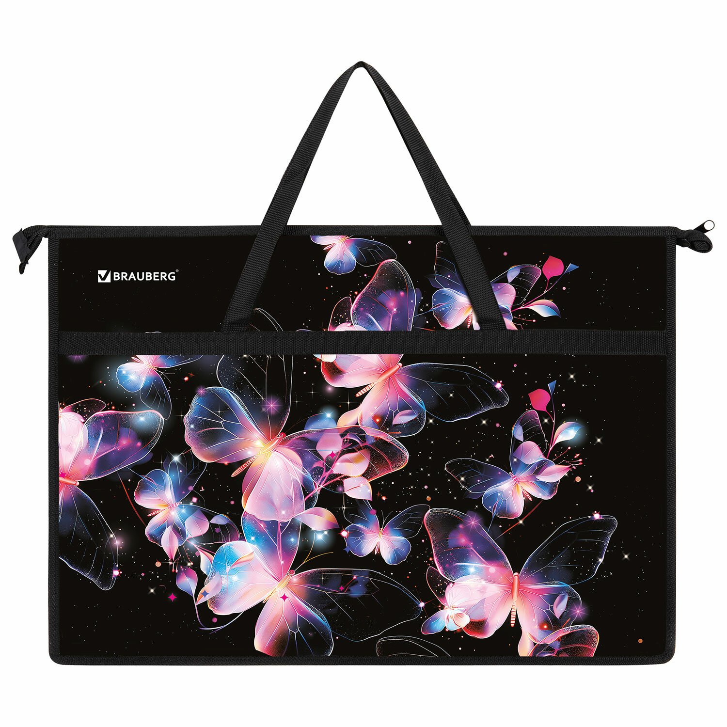 Папка для рисунков и чертежей с ручками BRAUBERG А3, пластик, молния сверху, Butterflies, 273412