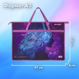 Папка для рисунков и чертежей с ручками BRAUBERG А3, пластик, молния сверху, "Melody", 228201