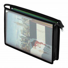 По бокам и внизу находится вставка из ткани, которая позволяет увеличить объем папки. Надежная застежка-молния расположена по верхнему краю папки.