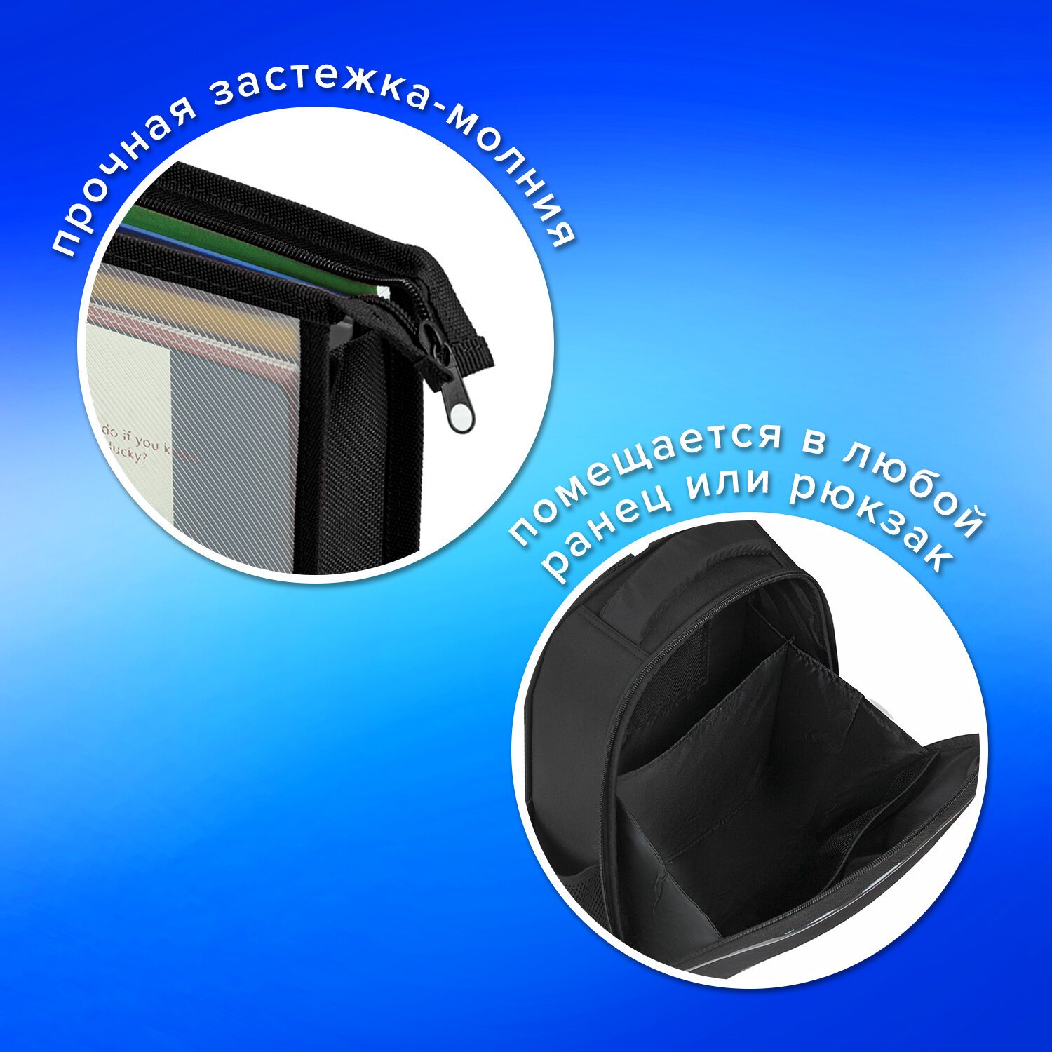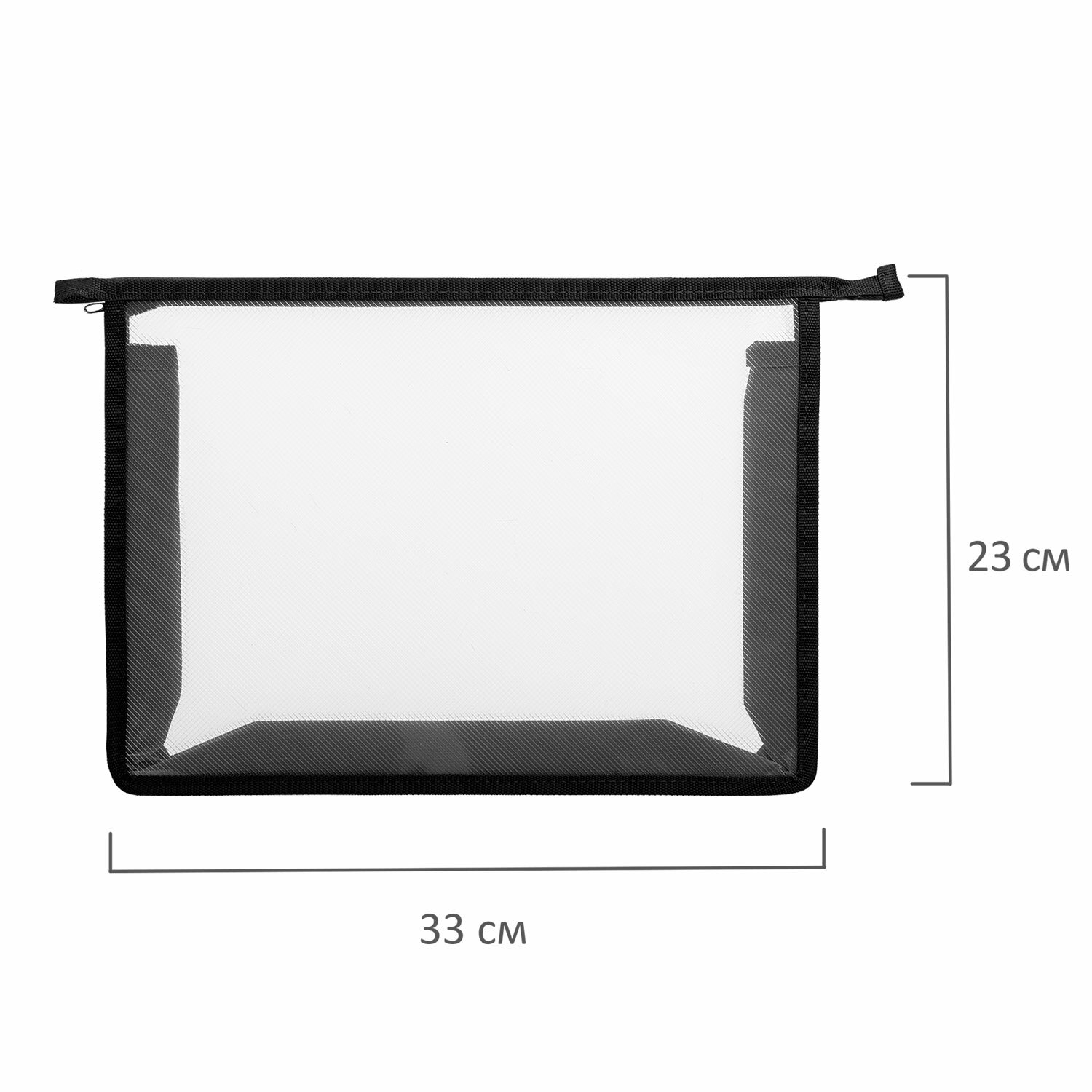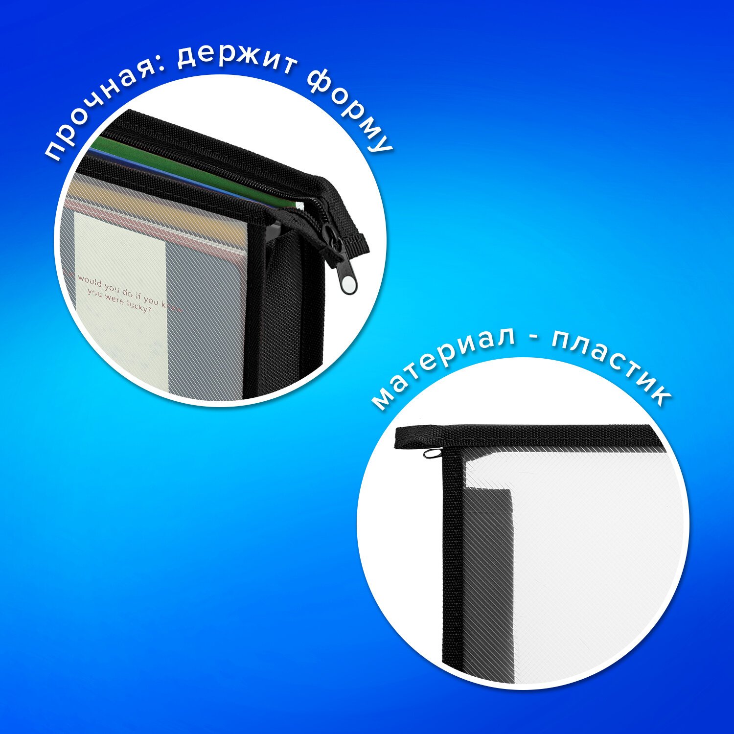 Папка для тетрадей А4 ПИФАГОР, пластик, молния сверху, прозрачная, черный, 272107