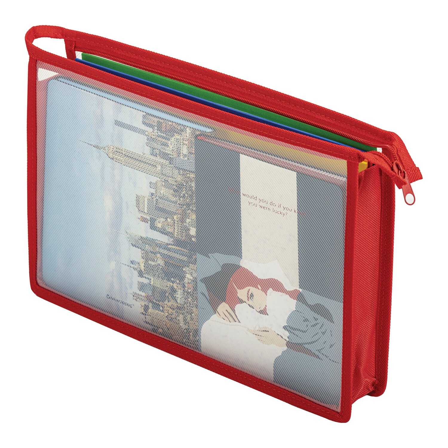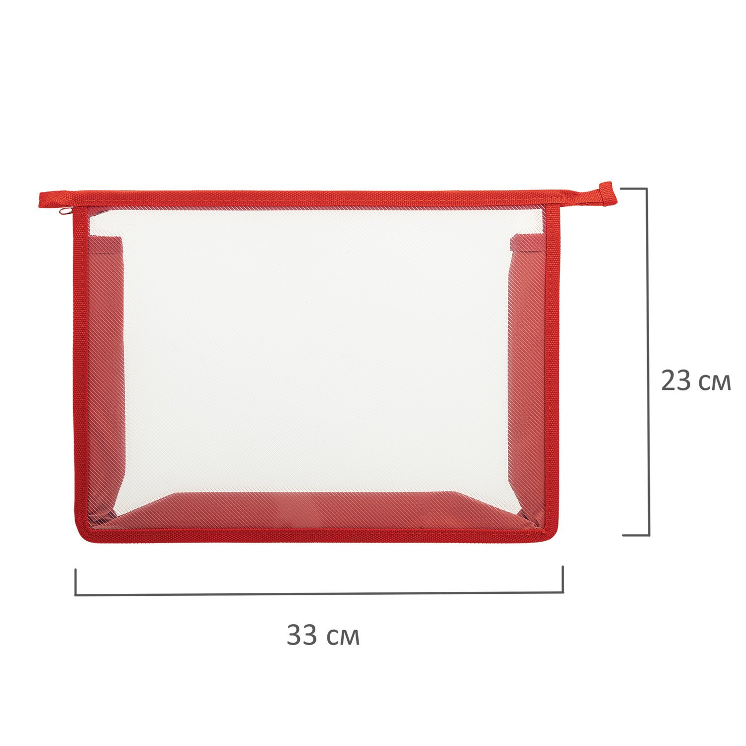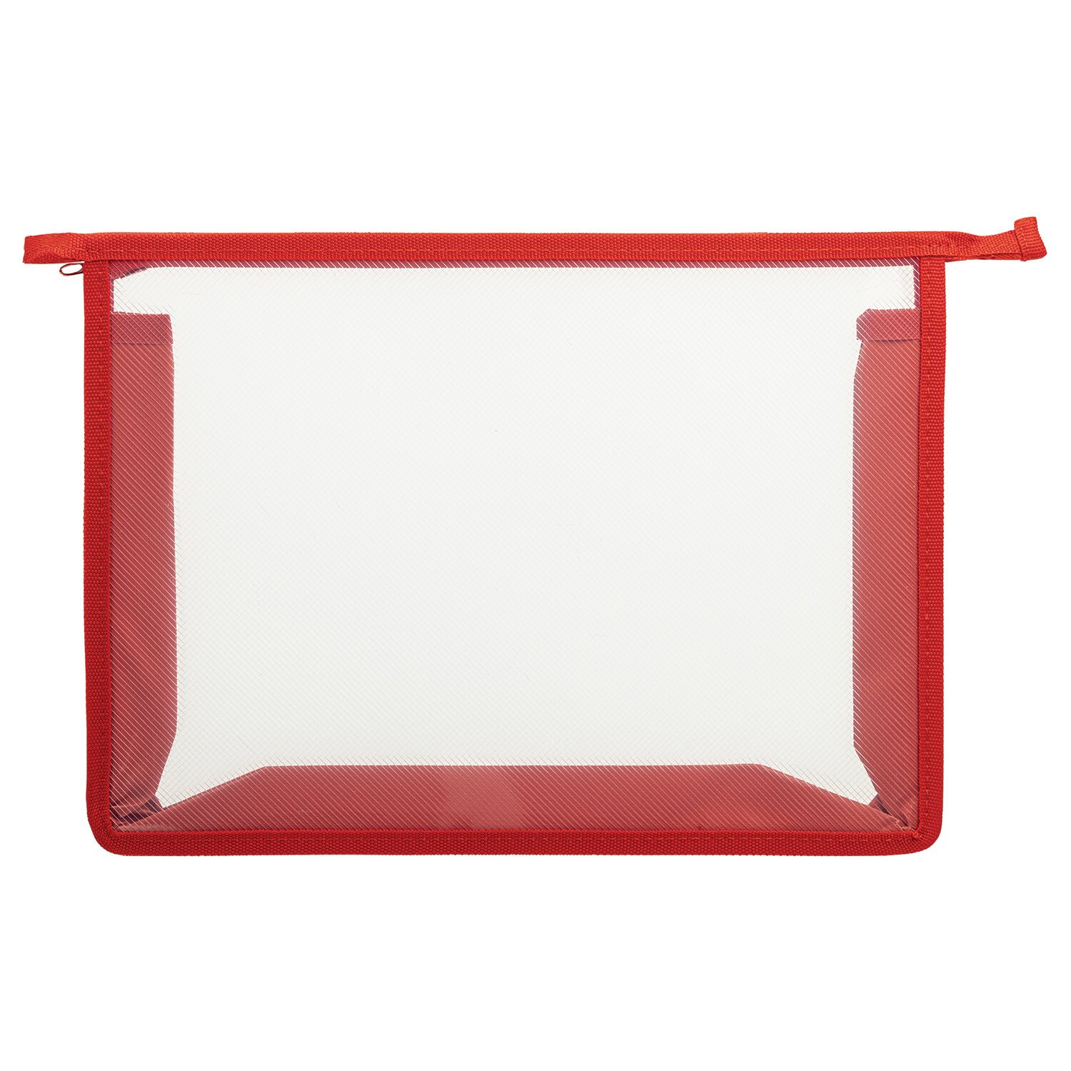 Папка для тетрадей А4 ПИФАГОР, пластик, молния сверху, прозрачная, красный, 272108