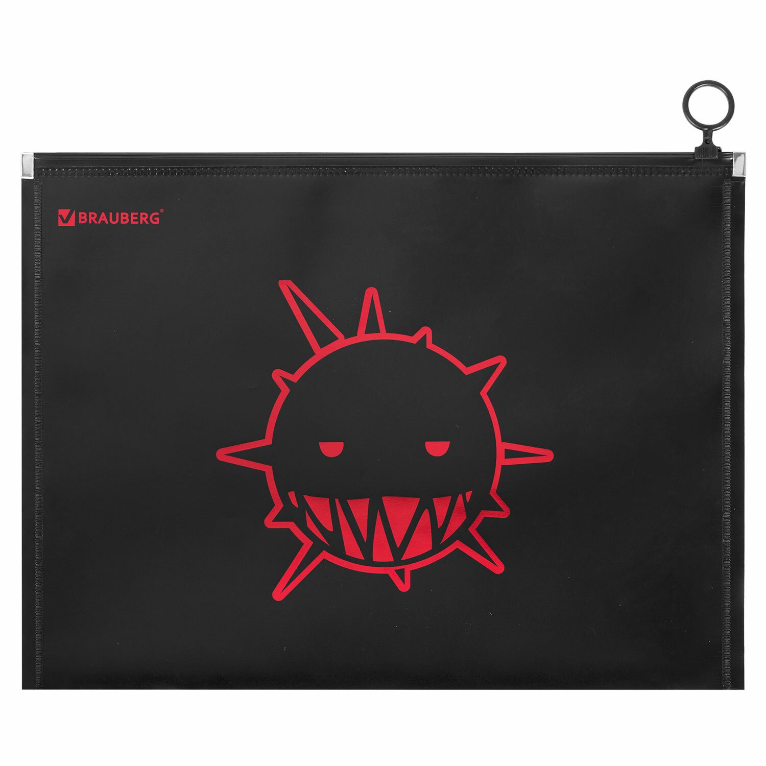 Папка для тетрадей BRAUBERG А4, 1 отделение, пластик, на zip-lock-молнии, "Danger", 272105
