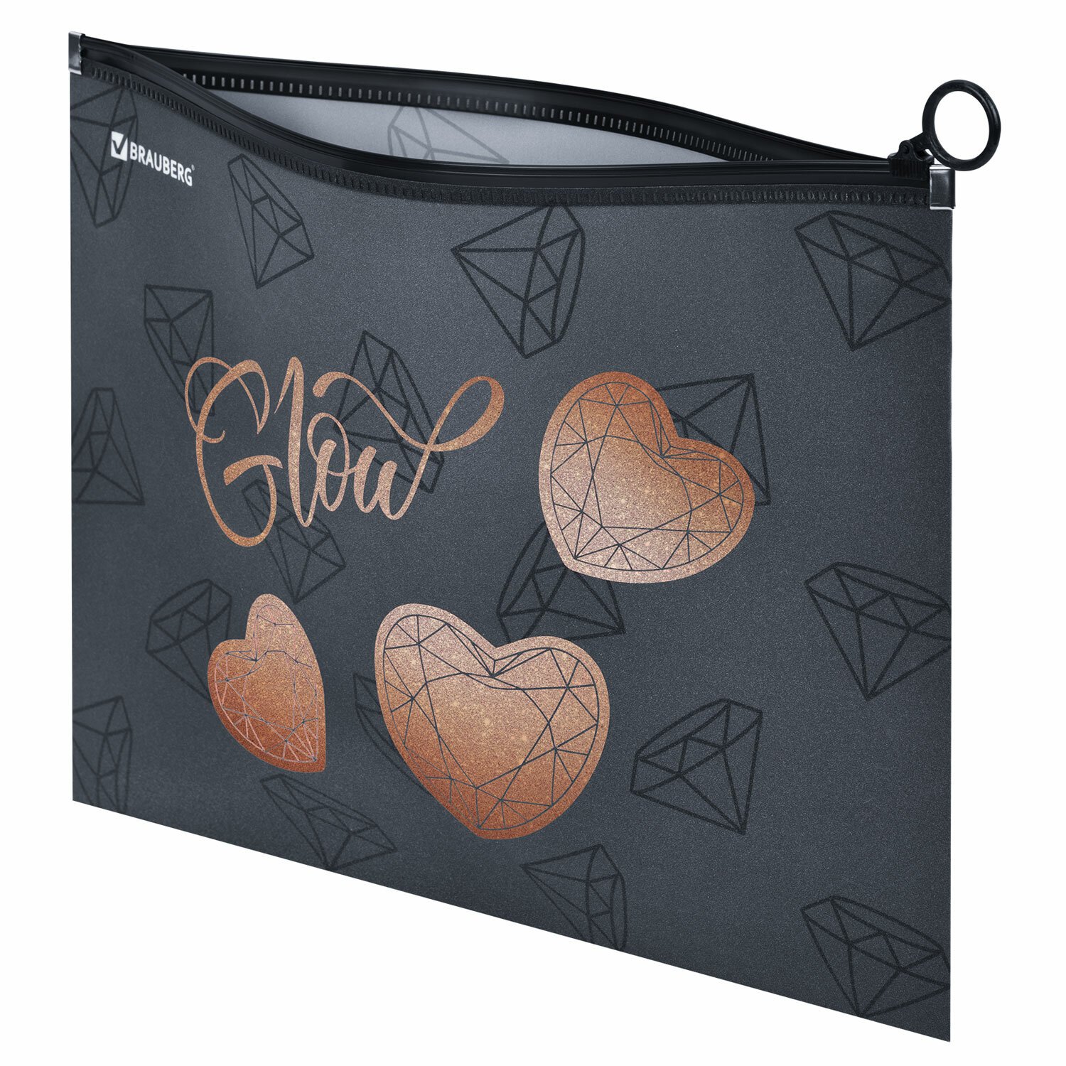Папка для тетрадей BRAUBERG А4, 1 отделение, пластик, на zip-lock-молнии, "Diamonds", 272104