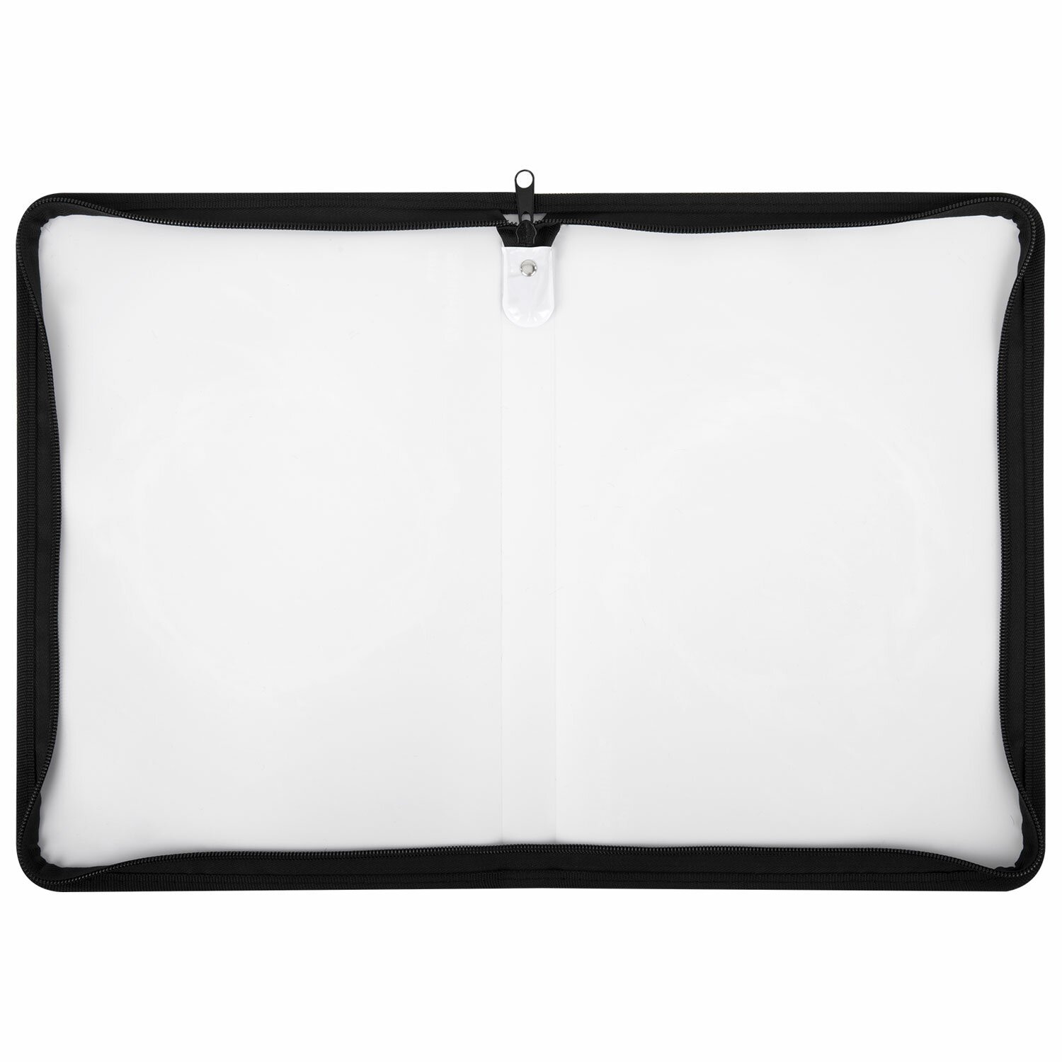 Застежка-молния, расположенная с трех сторон папки, обеспечивает быстрый доступ к содержимому. Идеально подходит для транспортировки и хранения канцелярских принадлежностей, тетрадей, учебников и пособий формата А4