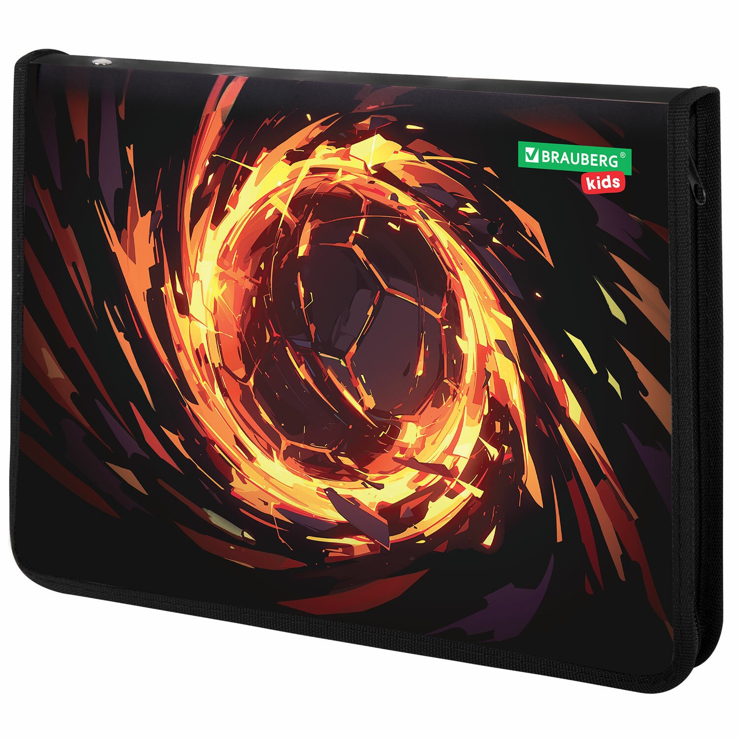 Папка для тетрадей BRAUBERG KIDS А4, 1 отделение, пластик, молния вокруг, Fire split, 273338