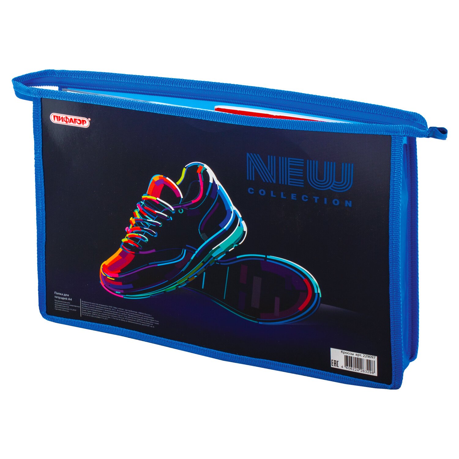 Папка для тетрадей ПИФАГОР идеально подходит для транспортировки и хранения канцелярских принадлежностей и учебных пособий формата А4. Яркая печать коллекционного дизайна на передней части папки, изготовленной из ламинированного картона. Оборотная часть папки изготовлена из прочного однотонного пластика. Застежка-молния, расположенная сверху обеспечивает надежную защиту и легкий доступ к содержимому.