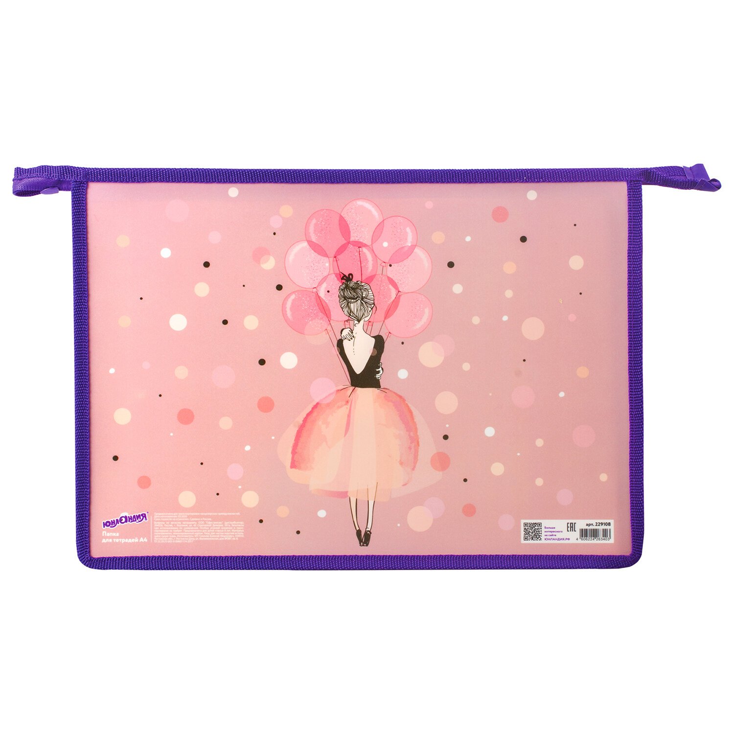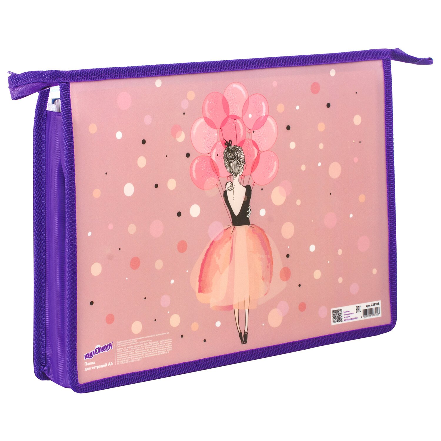 Папка для тетрадей ЮНЛАНДИЯ А4, 1 отделение, пластик, молния сверху, "Ballet", 229108