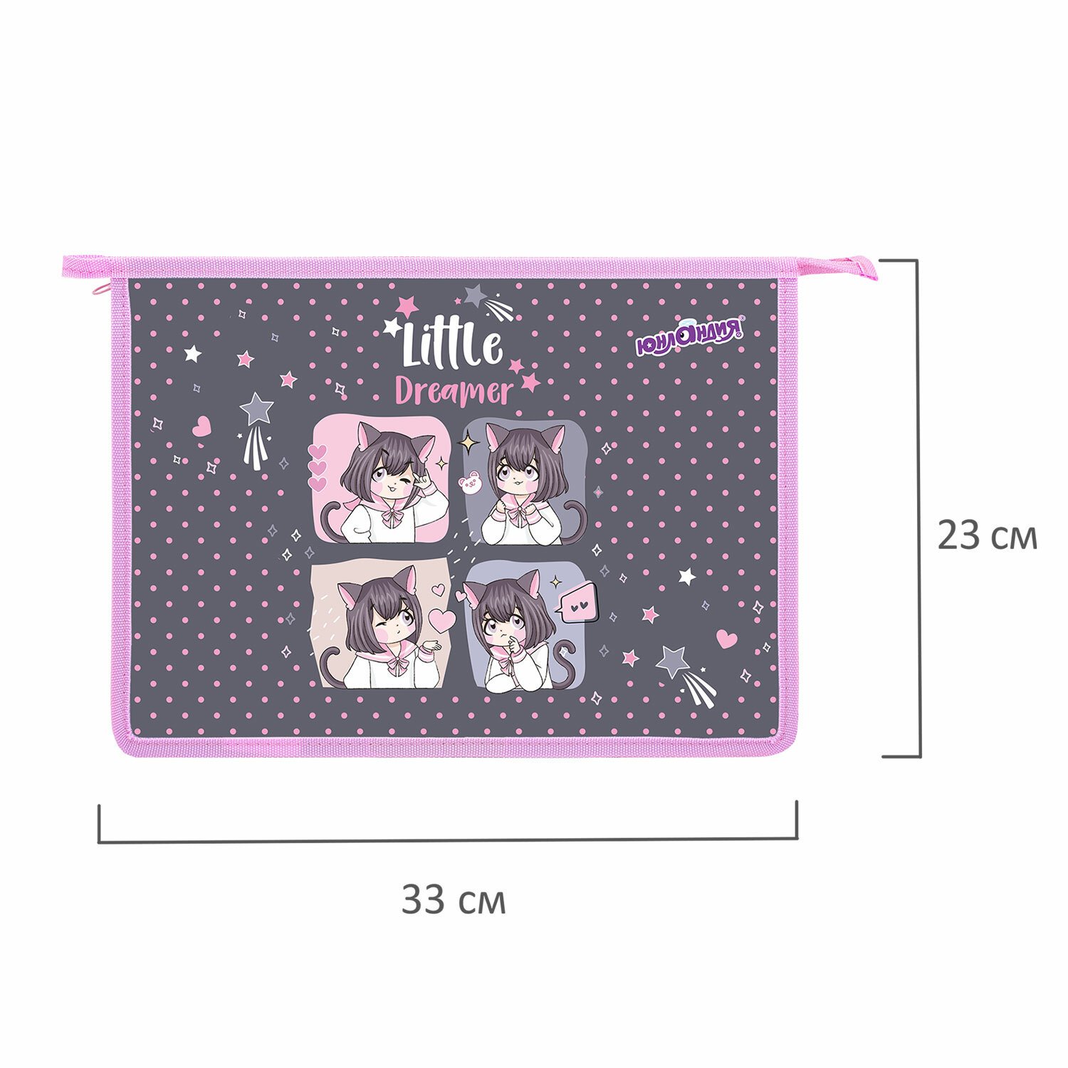 Папка для тетрадей ЮНЛАНДИЯ А4, 1 отделение, пластик, на молнии, Anime dreamer, 273349
