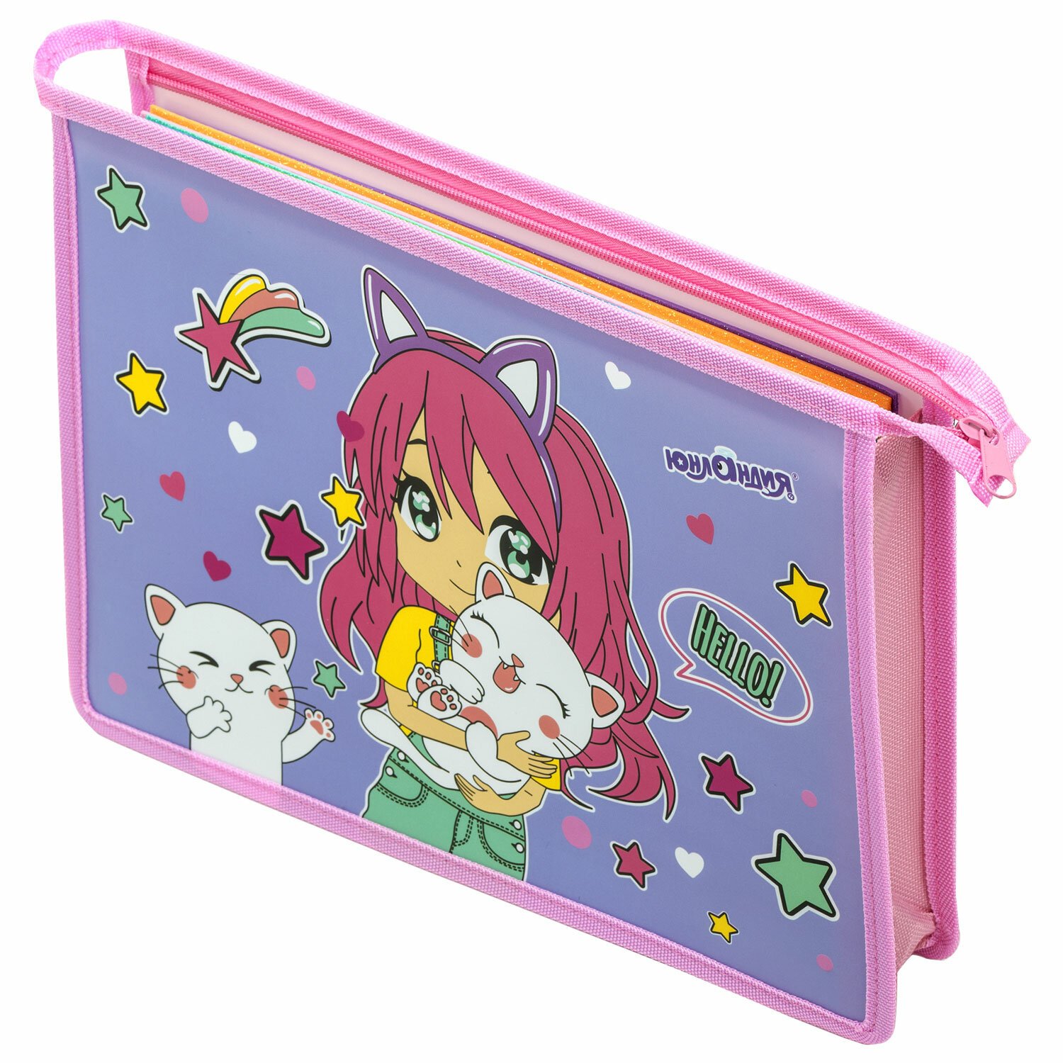 Папка для тетрадей ЮНЛАНДИЯ А4, 1 отделение, пластик, на молнии, "Anime hugs", 272138