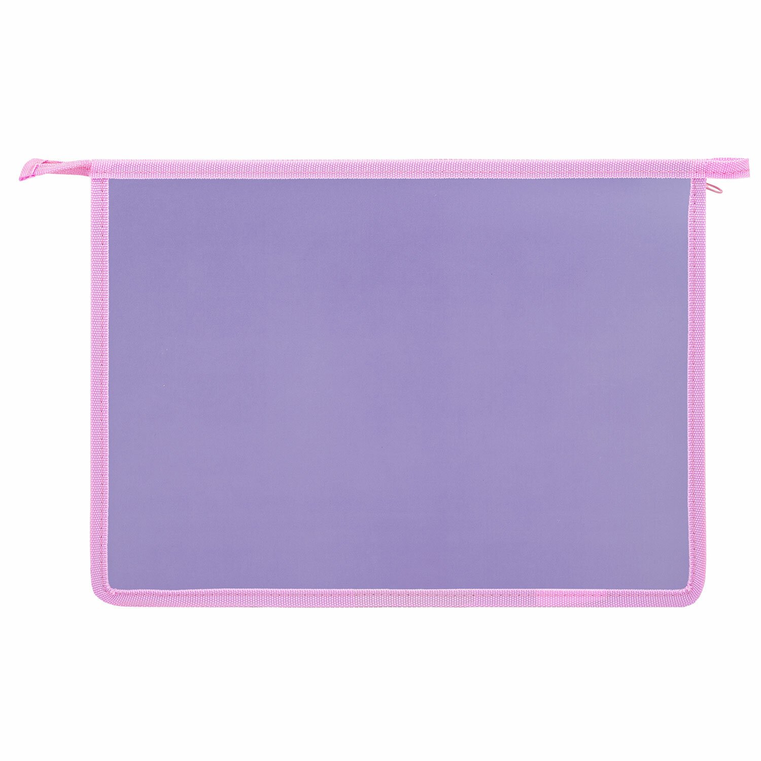 Изготовлена из прочного износостойкого пластика с тканевой окантовкой по краям. С одной стороны яркая печать коллекционного дизайна. Размер папки - 330х230 мм, ширина - 55 мм. Данный формат товара позволяет разместить канцелярские принадлежности и принадлежности для творчества внутри, а также бумаги, документы и учебные пособия формата А4. Папка имеет удобную застежку-молнию сверху.