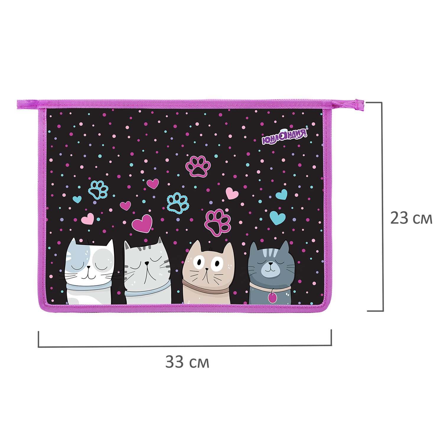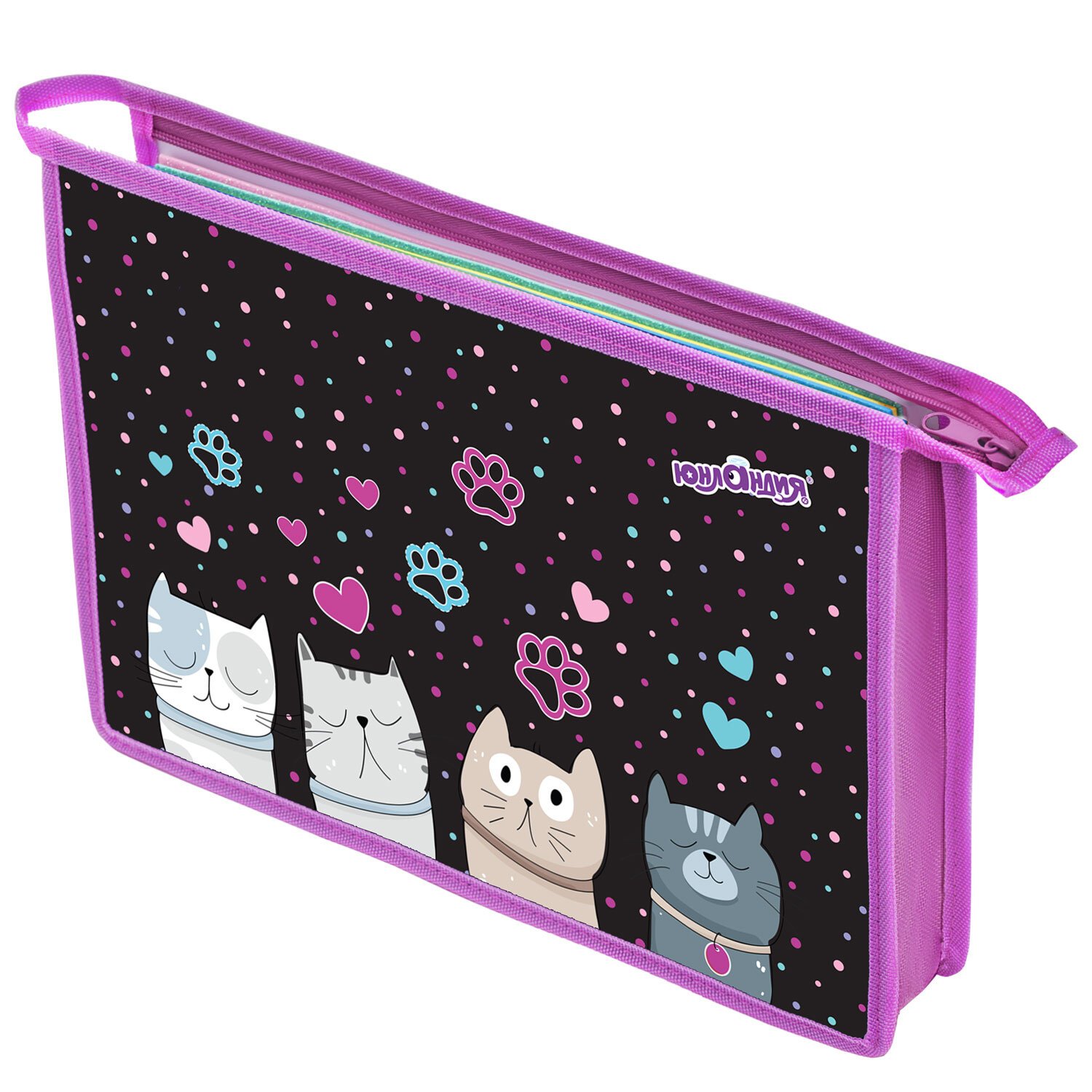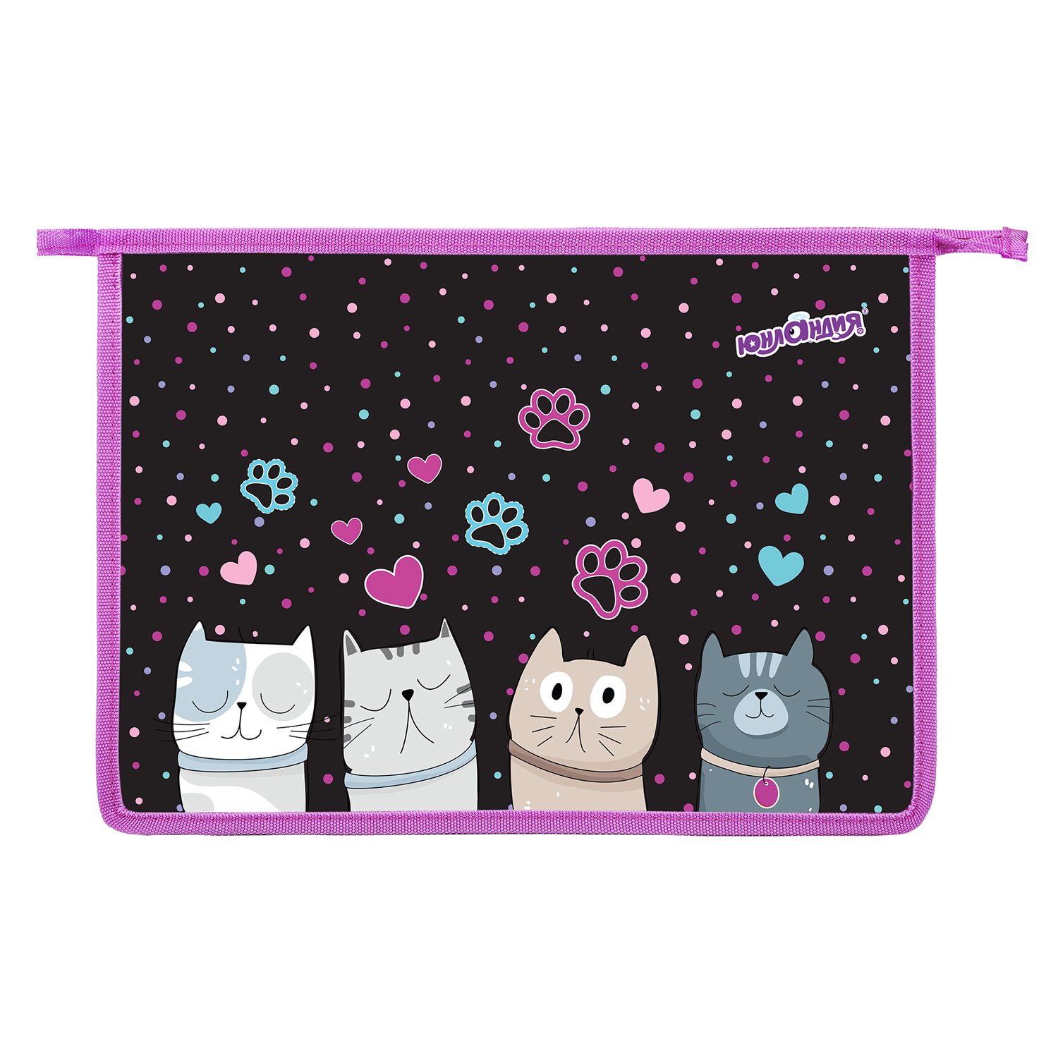 Папка для тетрадей ЮНЛАНДИЯ А4, 1 отделение, пластик, на молнии, "Sweet whiskers", 272137