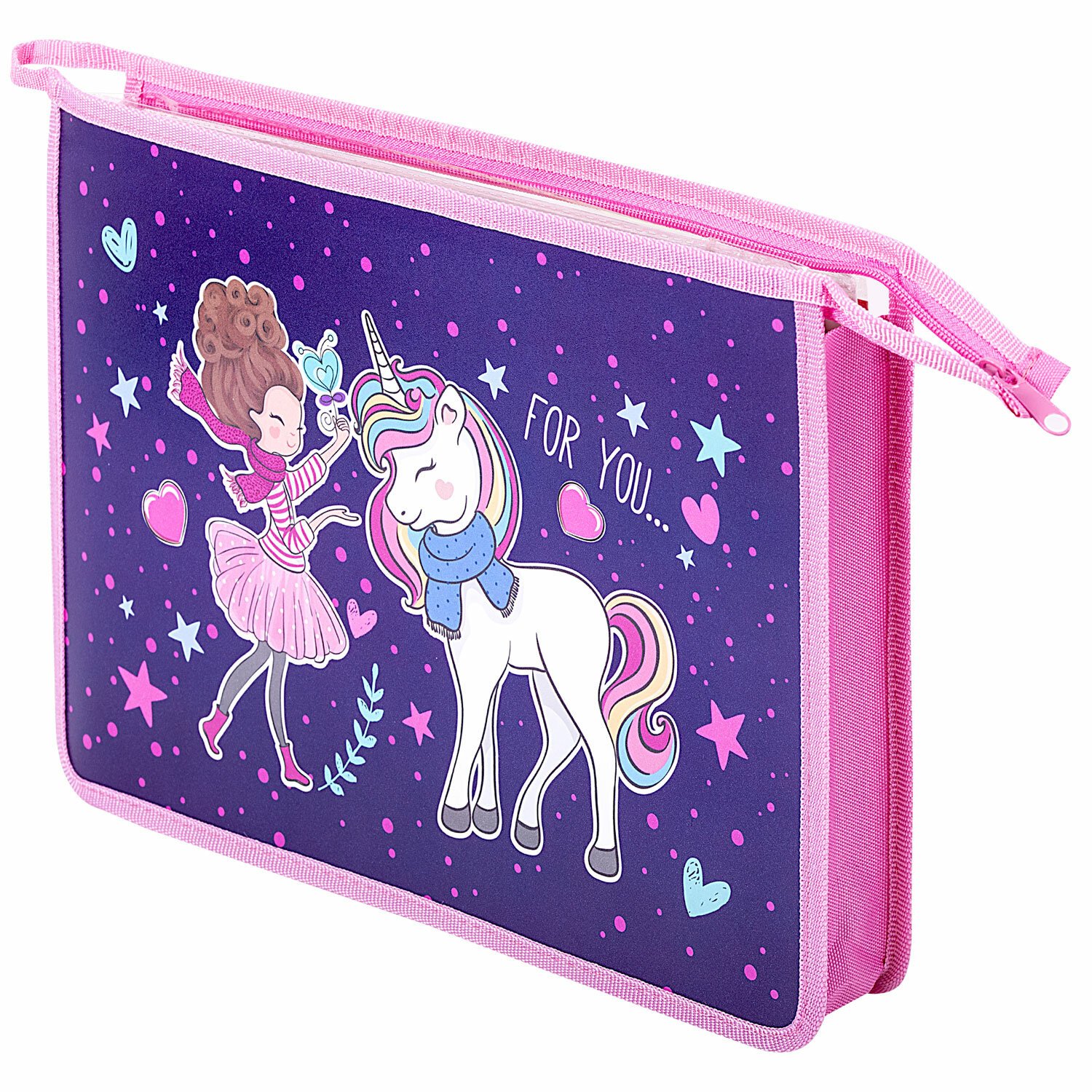 Папка для тетрадей ЮНЛАНДИЯ А4, 1 отделение, пластик, на молнии, "Little Friends", 271453