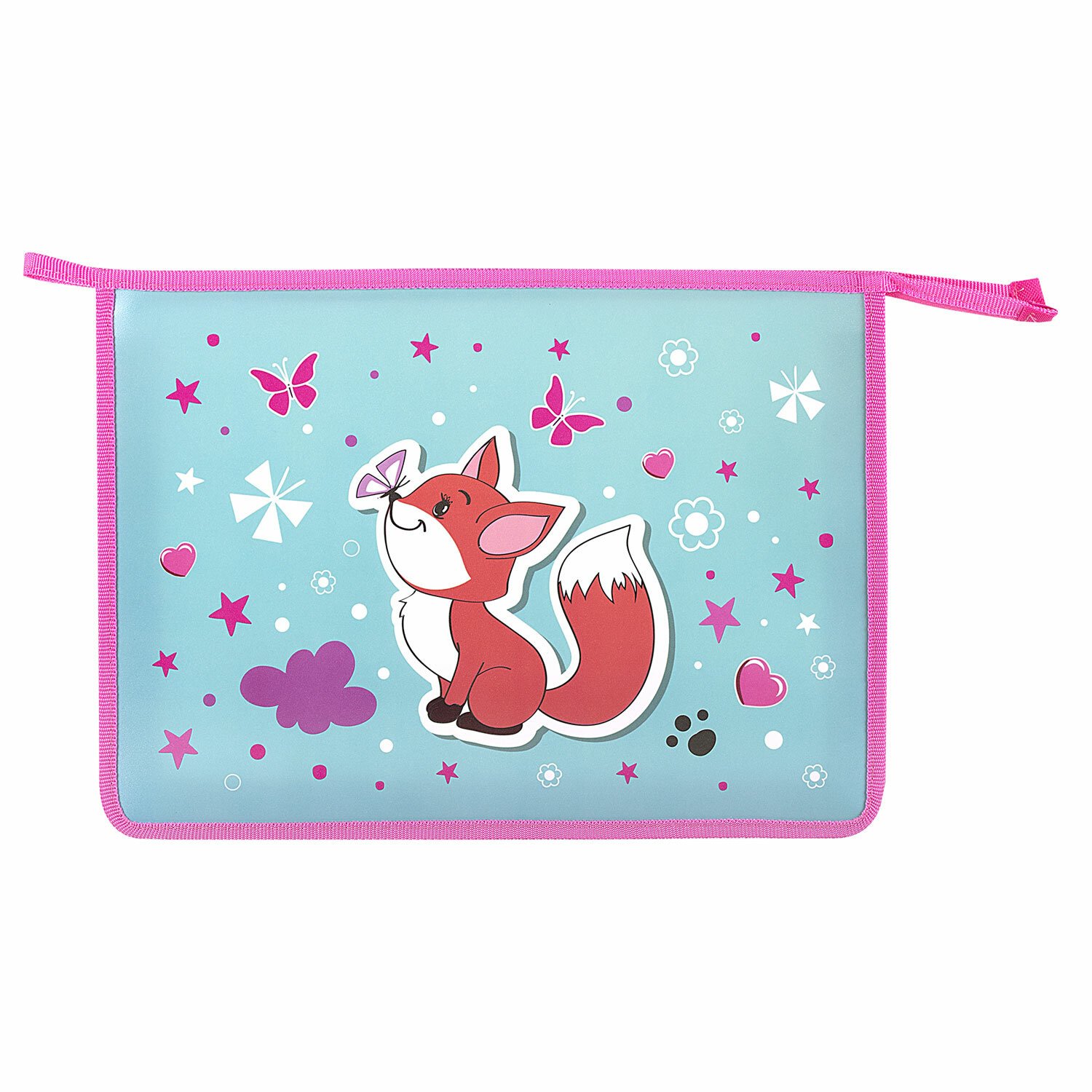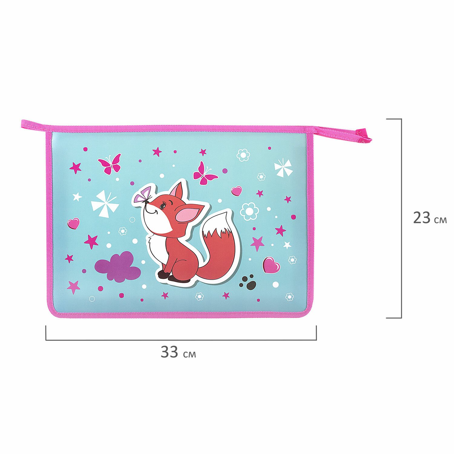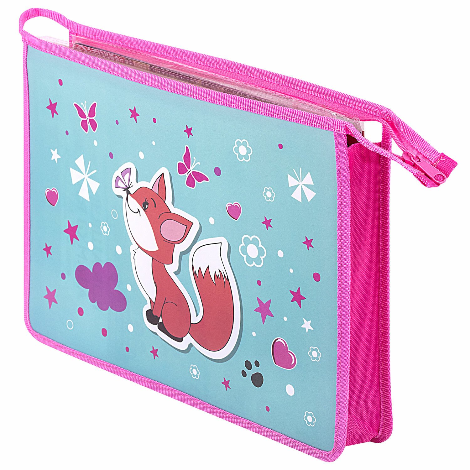 Папка для тетрадей ЮНЛАНДИЯ А4, 1 отделение, пластик, на молнии, "Lovely Fox", 271451