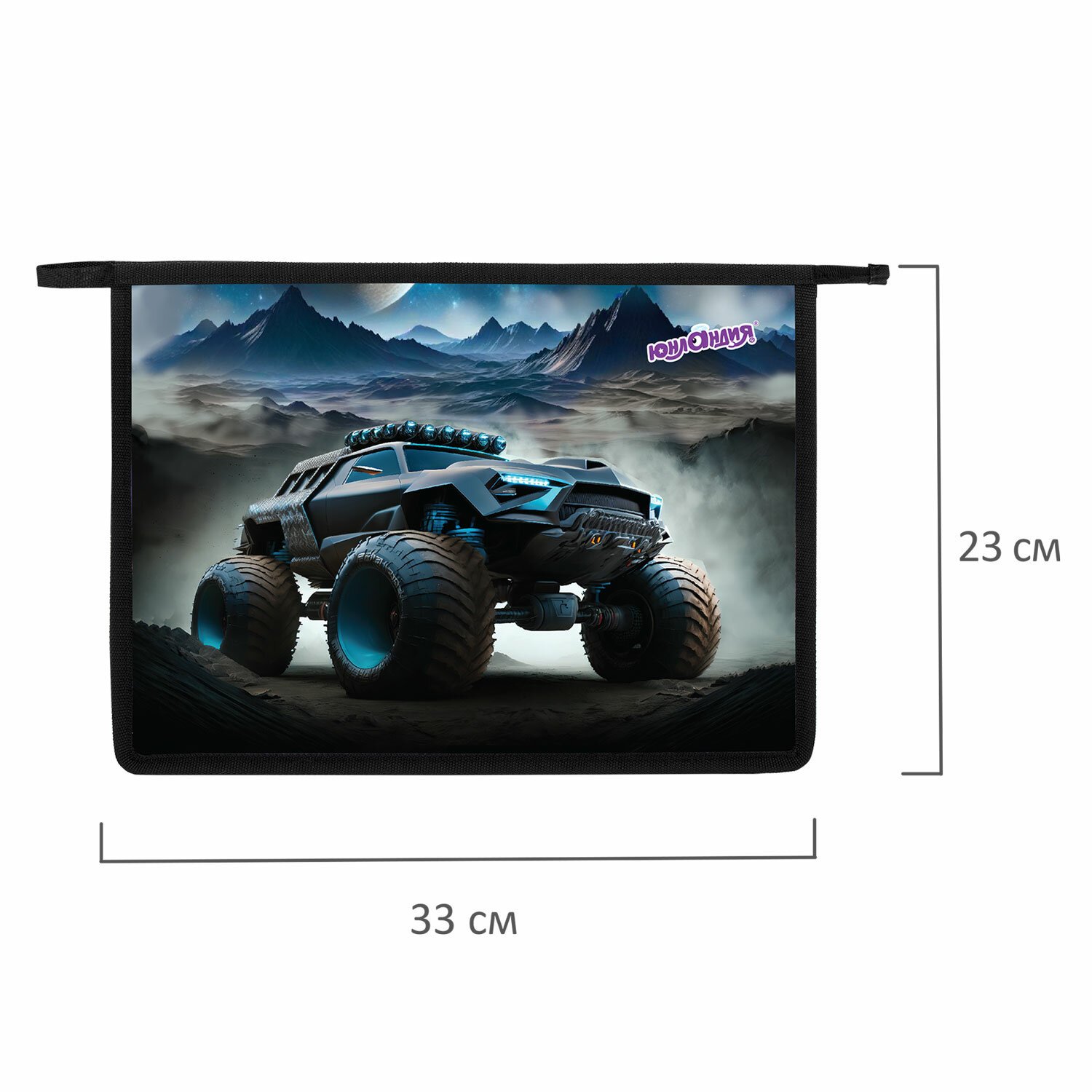Папка для тетрадей ЮНЛАНДИЯ А4, 1 отделение, пластик, на молнии, Space driver, 273352