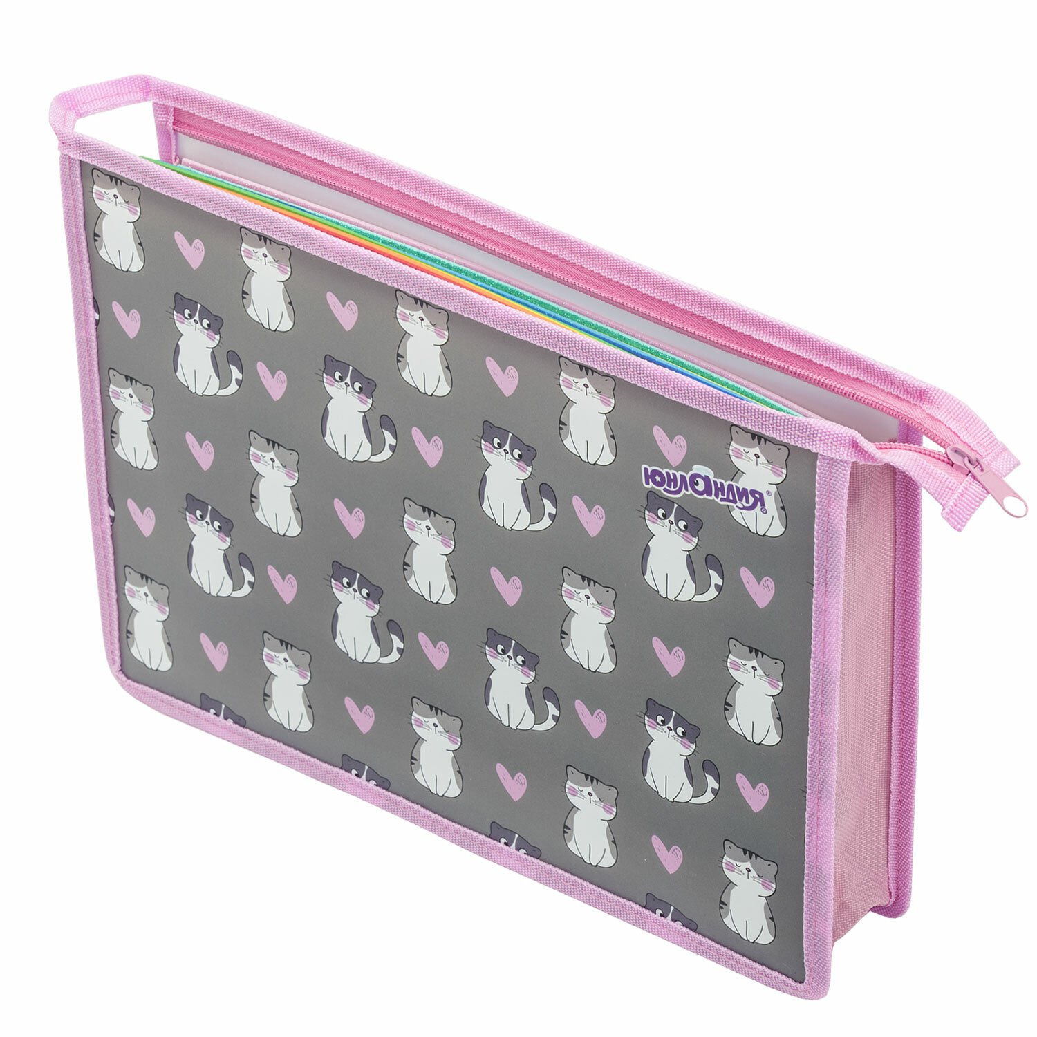 Папка для тетрадей ЮНЛАНДИЯ А4, 1 отделение, пластик, на молнии, "Sweet whiskers", 272137