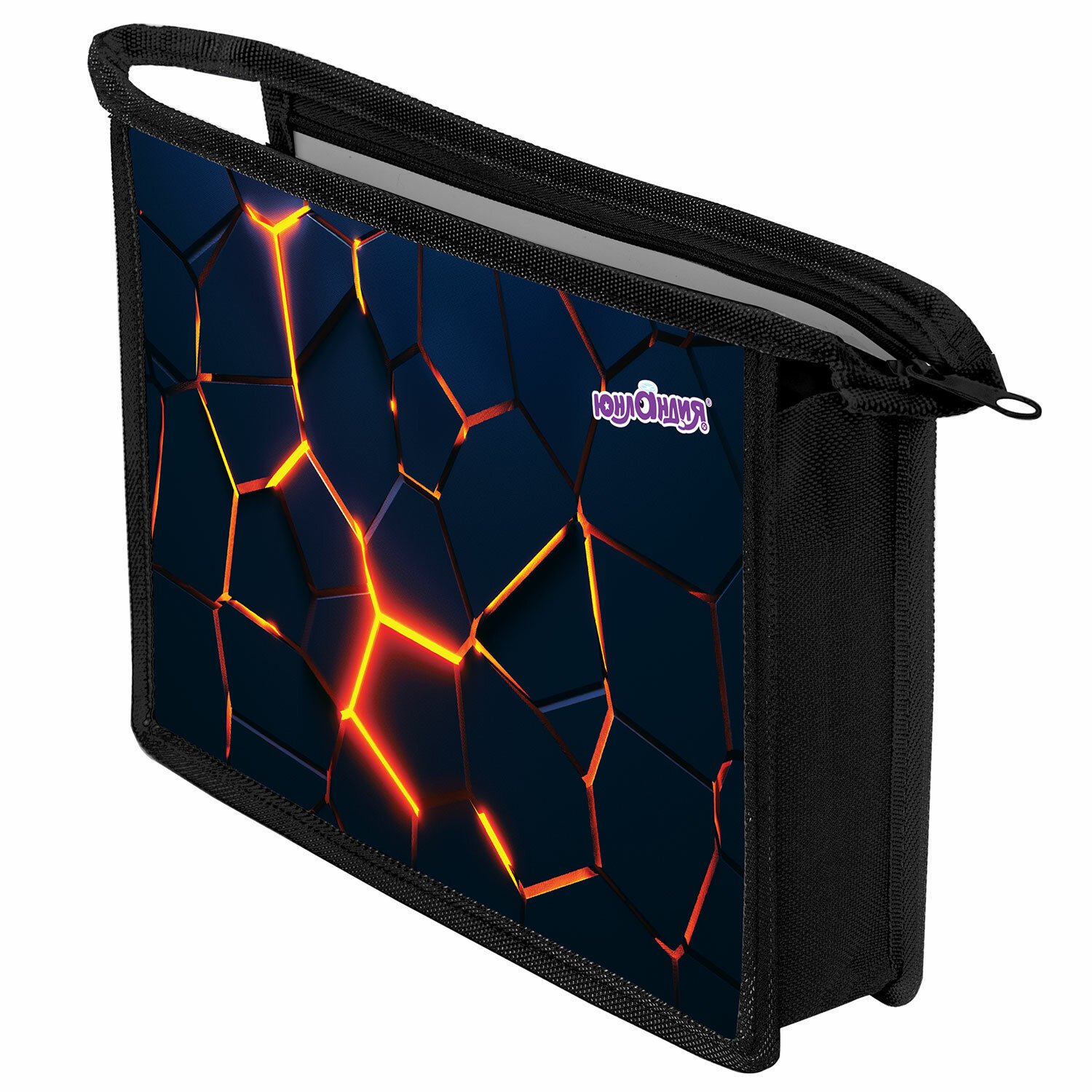 Папка для тетрадей ЮНЛАНДИЯ А4, 1 отделение, пластик, на молнии, Volcano split, 273350