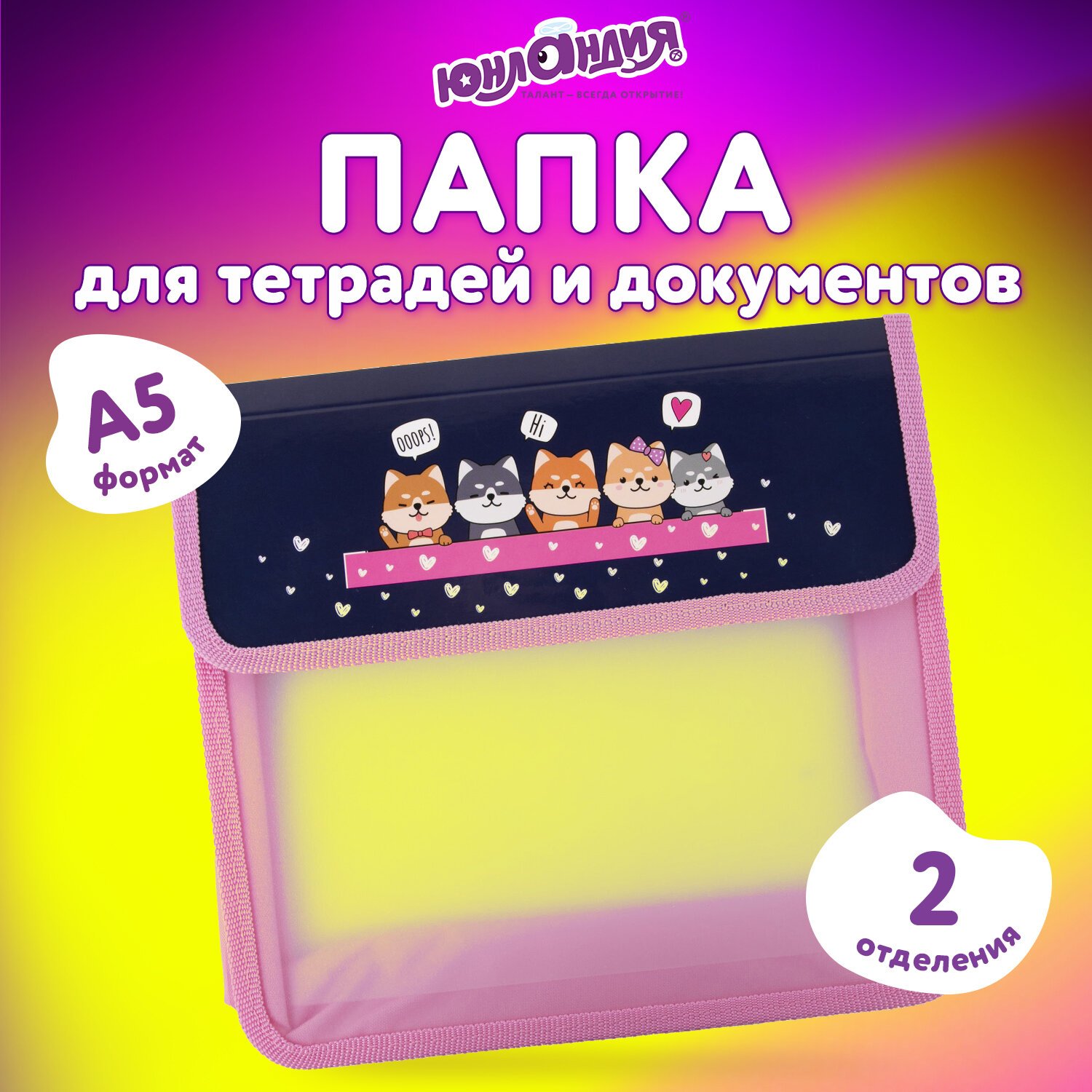 Папка для тетрадей ЮНЛАНДИЯ А5, пластик, 2 отделения, клапан на липучке, "Dream Team", 271490