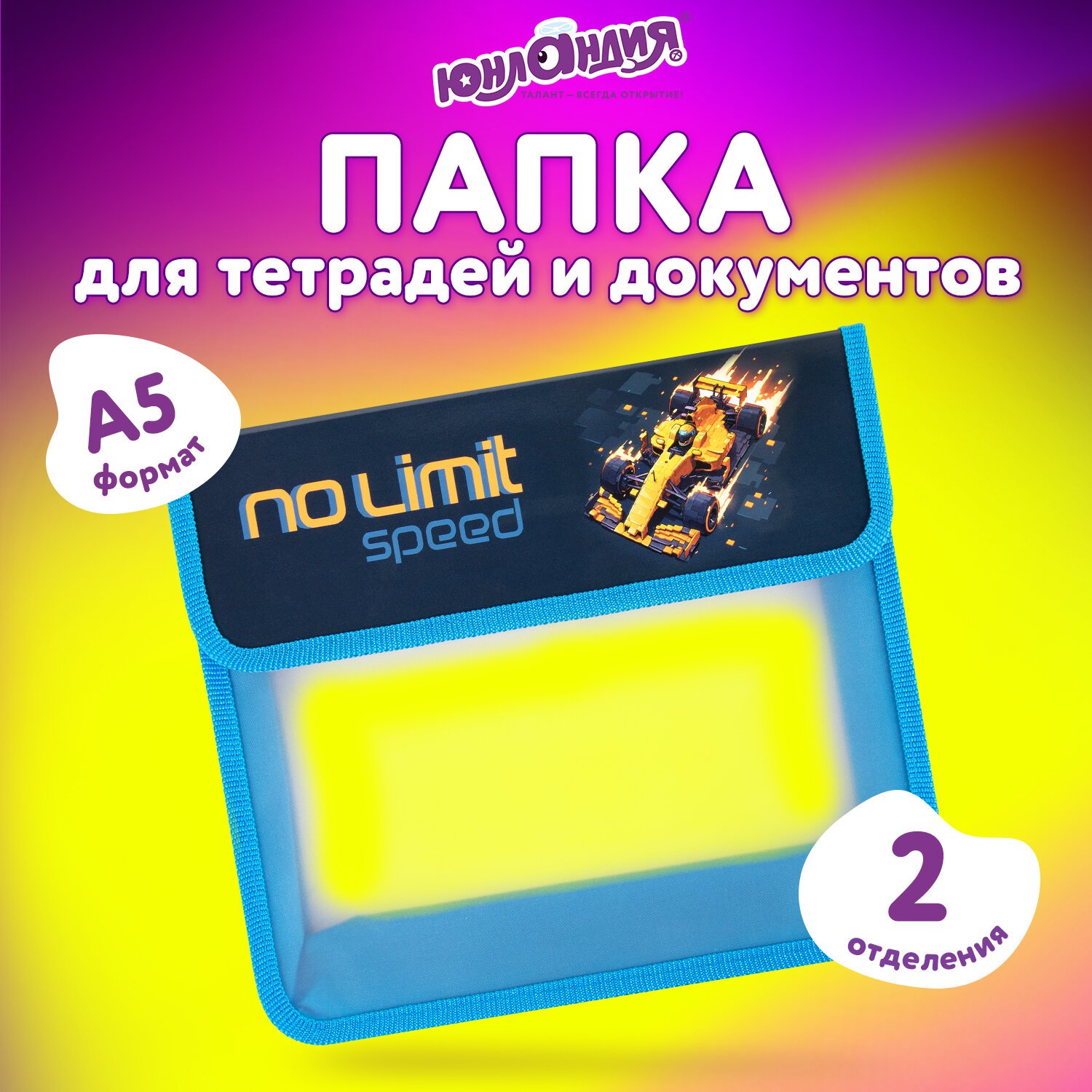 Папка для тетрадей ЮНЛАНДИЯ А5, пластик, 2 отделения, клапан на липучке, No limit, 273334