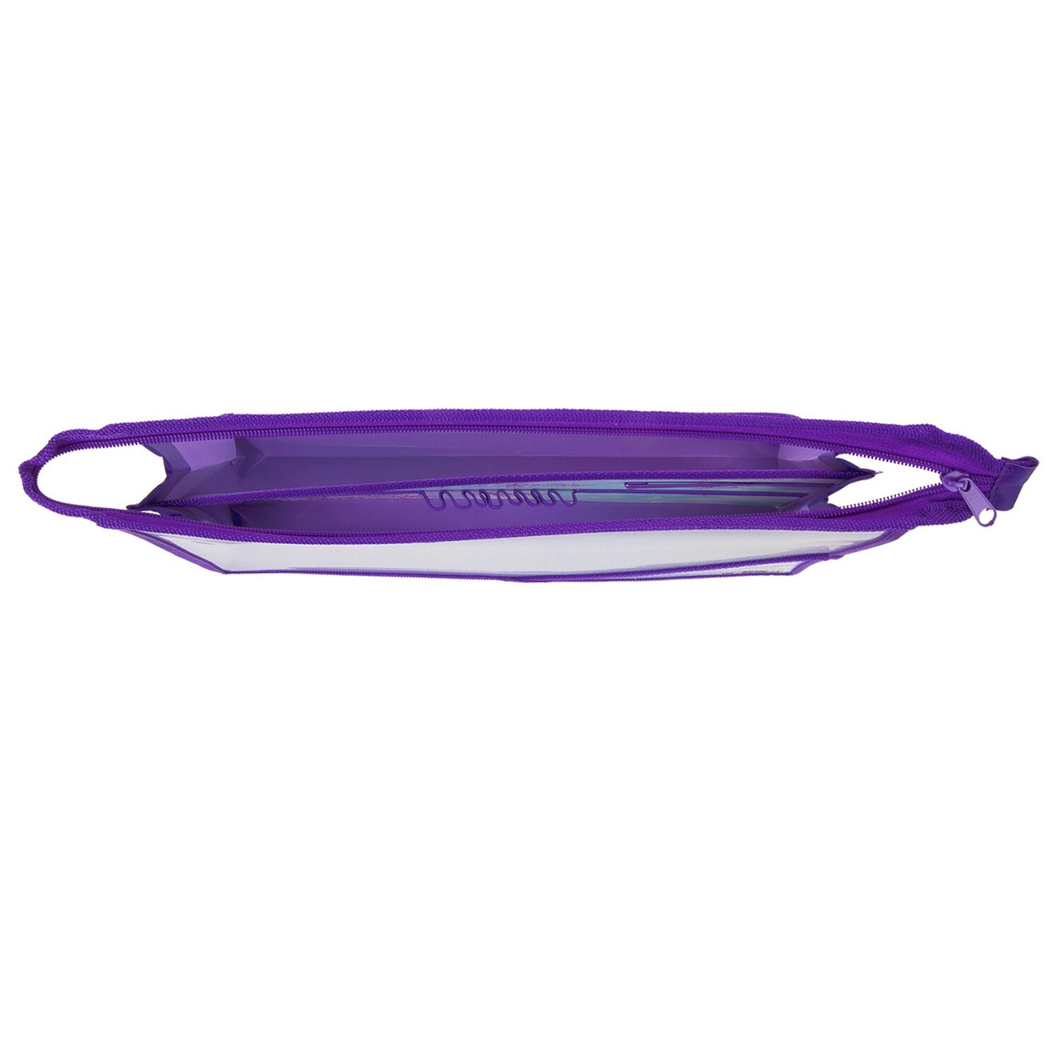 Папки выполнены из пластика, по краям – тканевая окантовка. Подобная конструкция является прочной и износостойкой, позволит защитить содержимое при переноске и хранении. Крепкая застежка-молния расположена по верхнему краю папки. Размер папки – 330х230 мм, ширина – 100 мм. Вмещают канцелярские и творческие принадлежности, а также бумагу формата А4. Разделитель отделений имеет органайзер-резинки для канцелярии.
