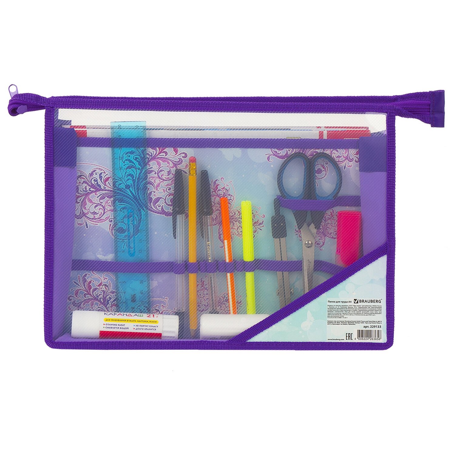 Папка для труда BRAUBERG формата А4 предназначена для хранения канцелярских и творческих принадлежностей. Имеет два отделения, органайзер внутри.