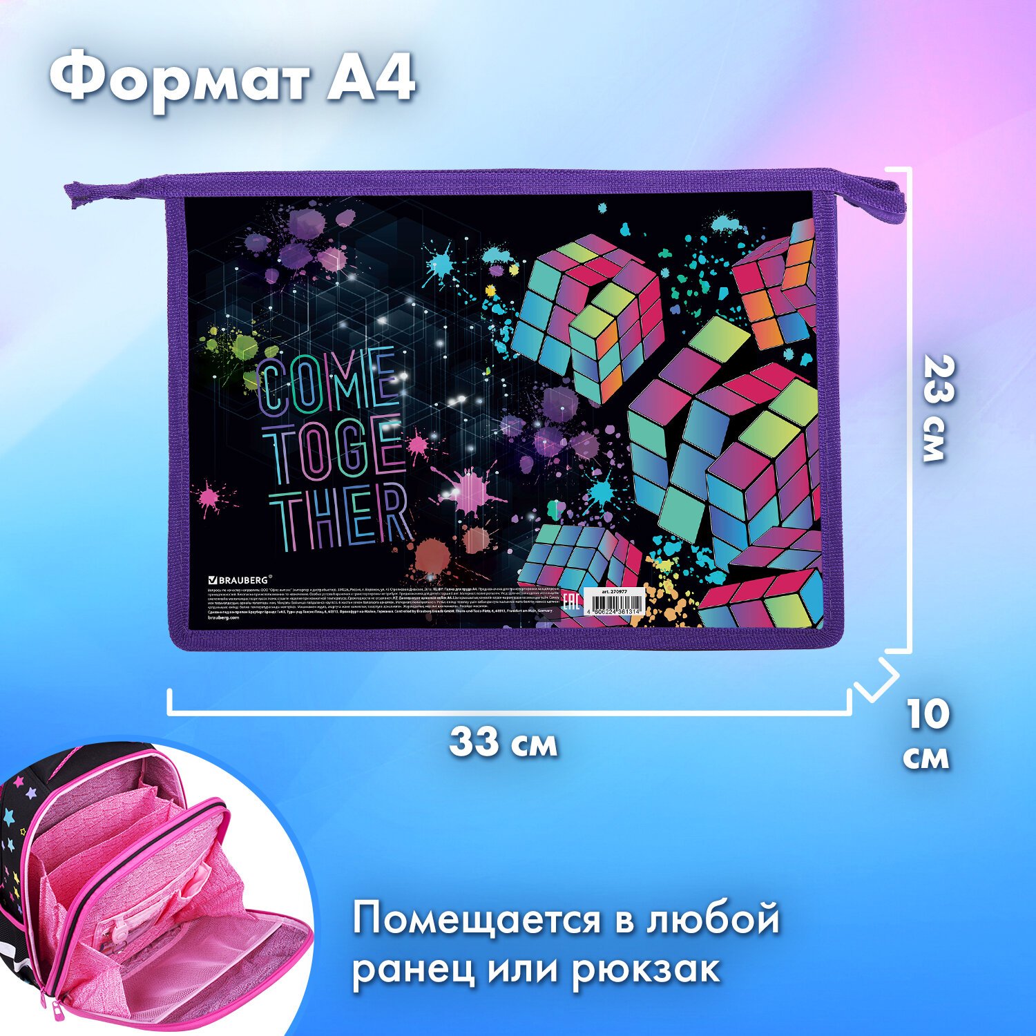Папка для труда на молнии BRAUBERG А4, 2 отделения, органайзер, "Come together", 270977