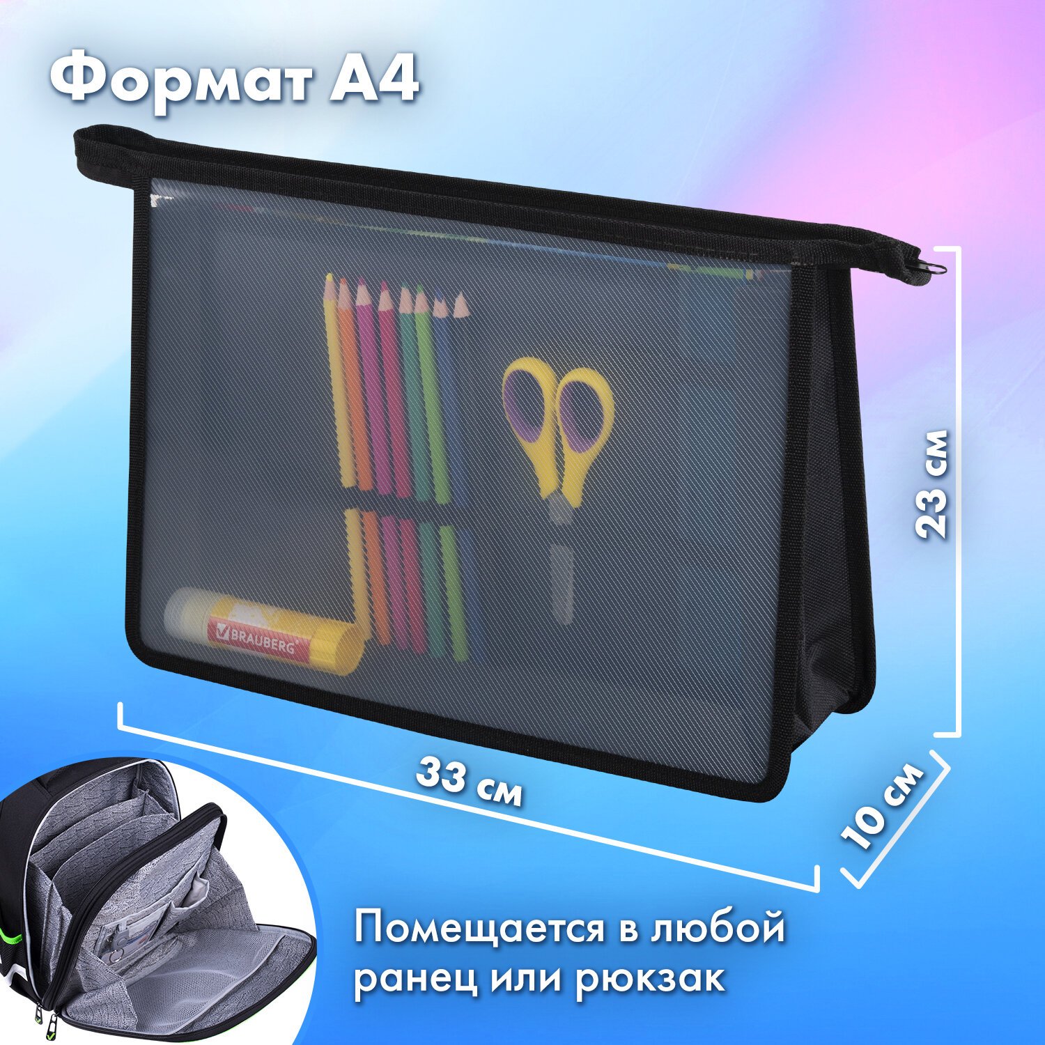 Папки для труда BRAUBERG формата А4 вмещают канцелярские и творческие принадлежности, а также бумагу формата А4.