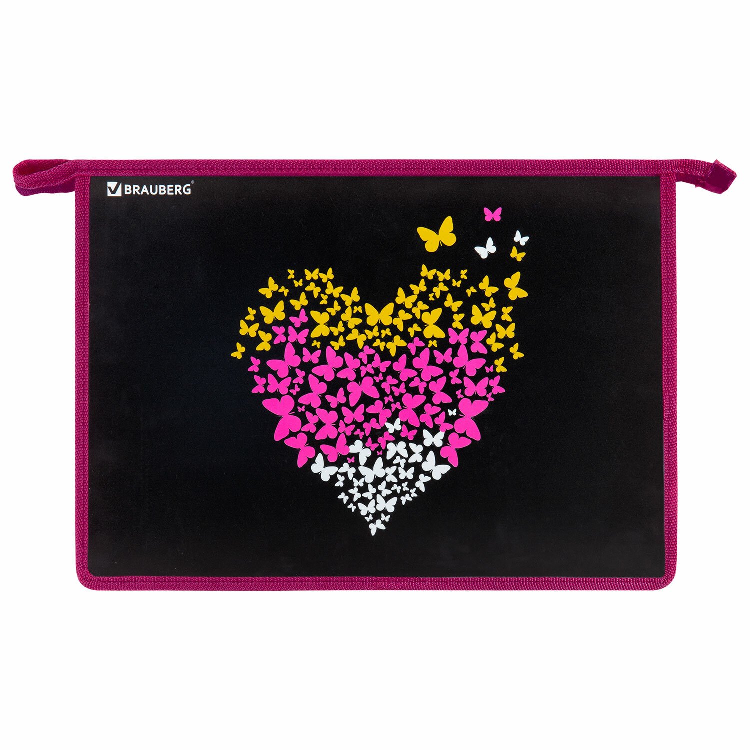 Папка для труда на молнии BRAUBERG А4, 2 отделения, органайзер, "Shining heart", 272210