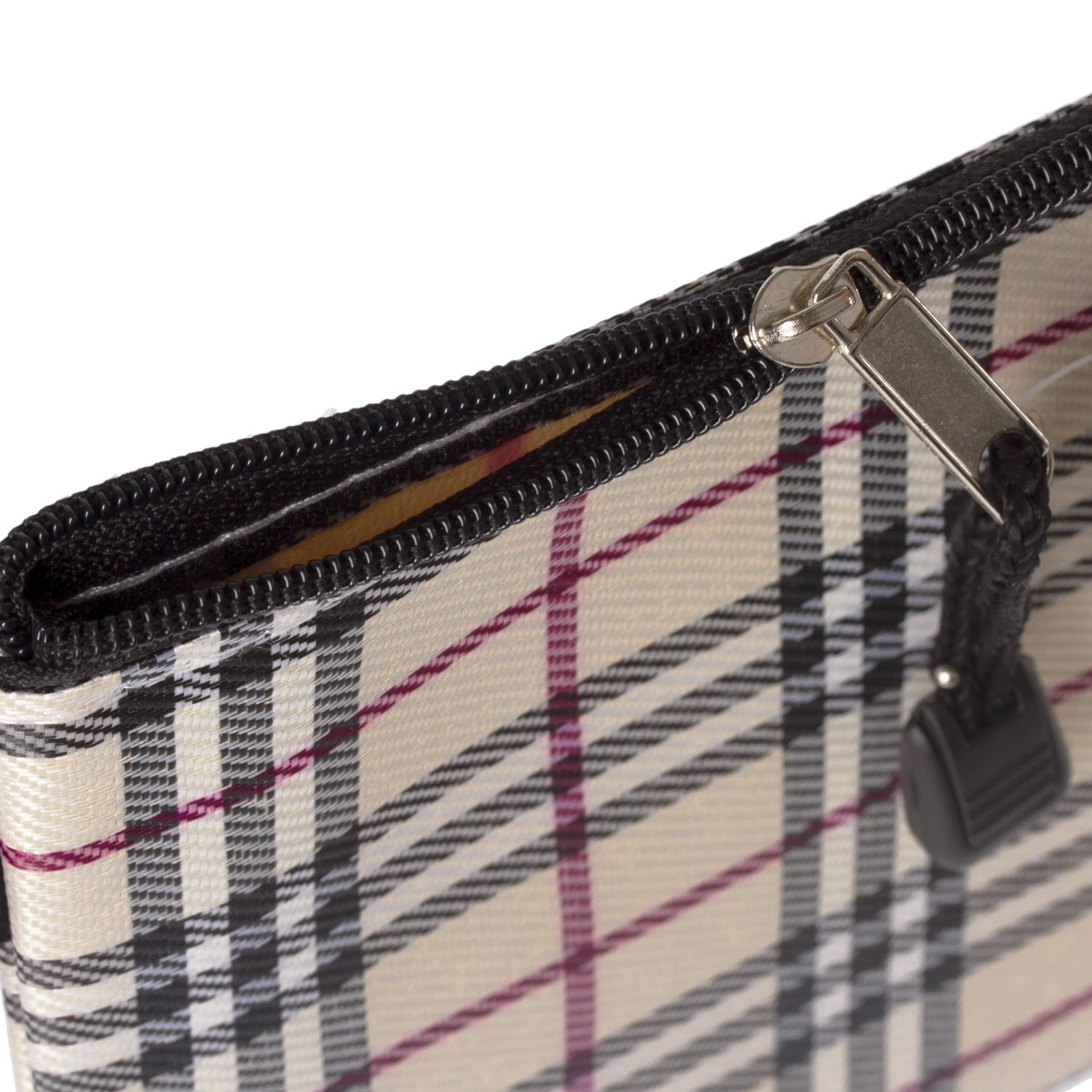 Изготовлена из прочного стильного текстильного материала в клетку. Формат А4 (335х243 мм). Герметичная застежка-молния защищает документы от механических повреждений, а также пыли и влаги. Цвет молнии - черный.