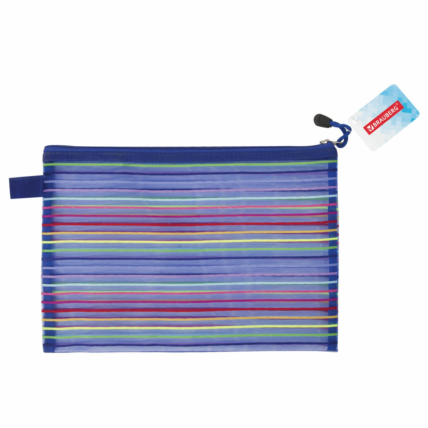 Папка-конверт на молнии формат B5+ (310х220 мм), сетчатая ткань, BRAUBERG "Stripes", 224047