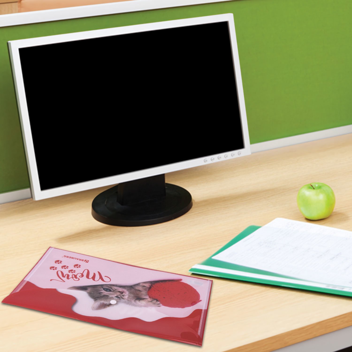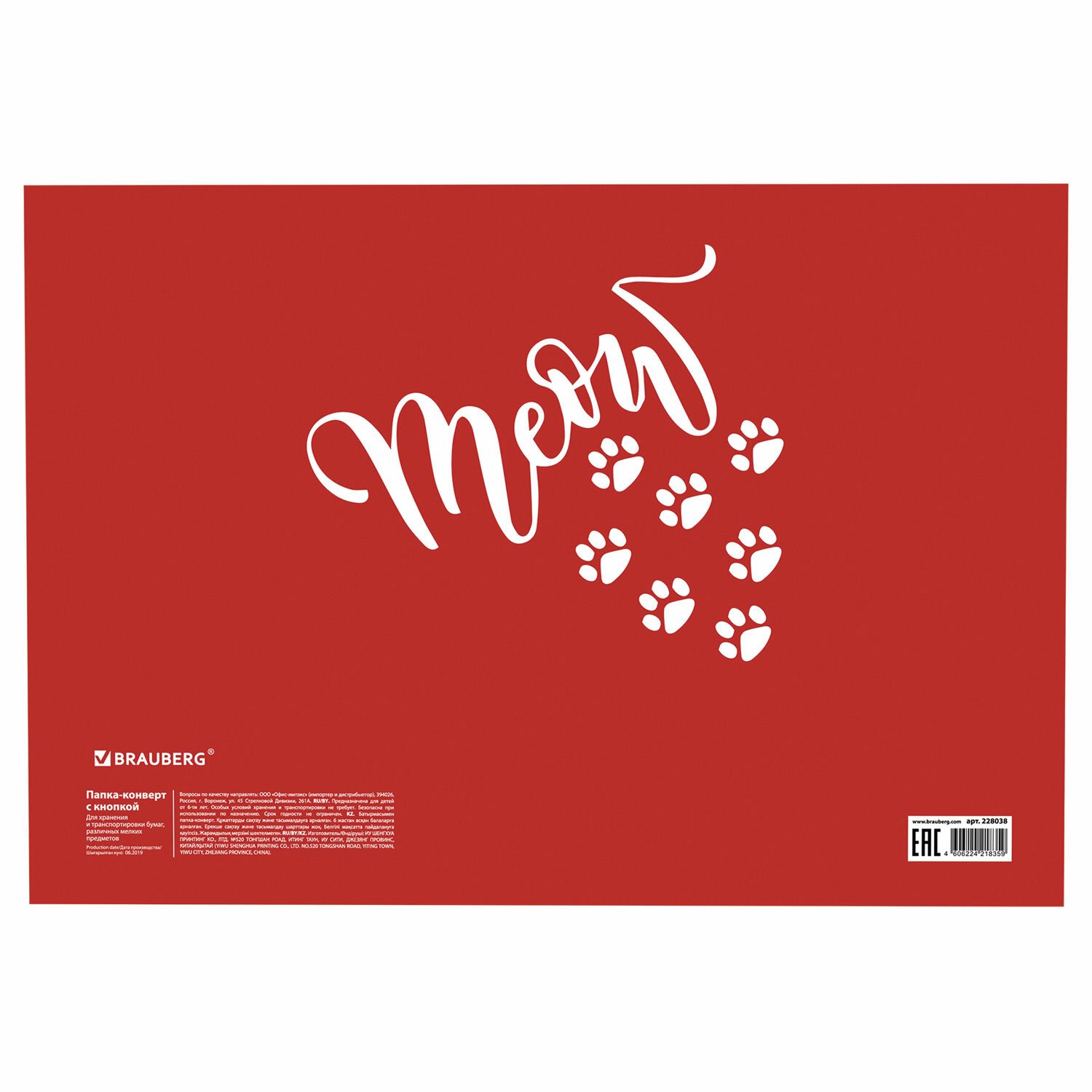 Папка-конверт с кнопкой BRAUBERG "FUNNY CAT", А4, 160 мкм, цветная печать, 228038