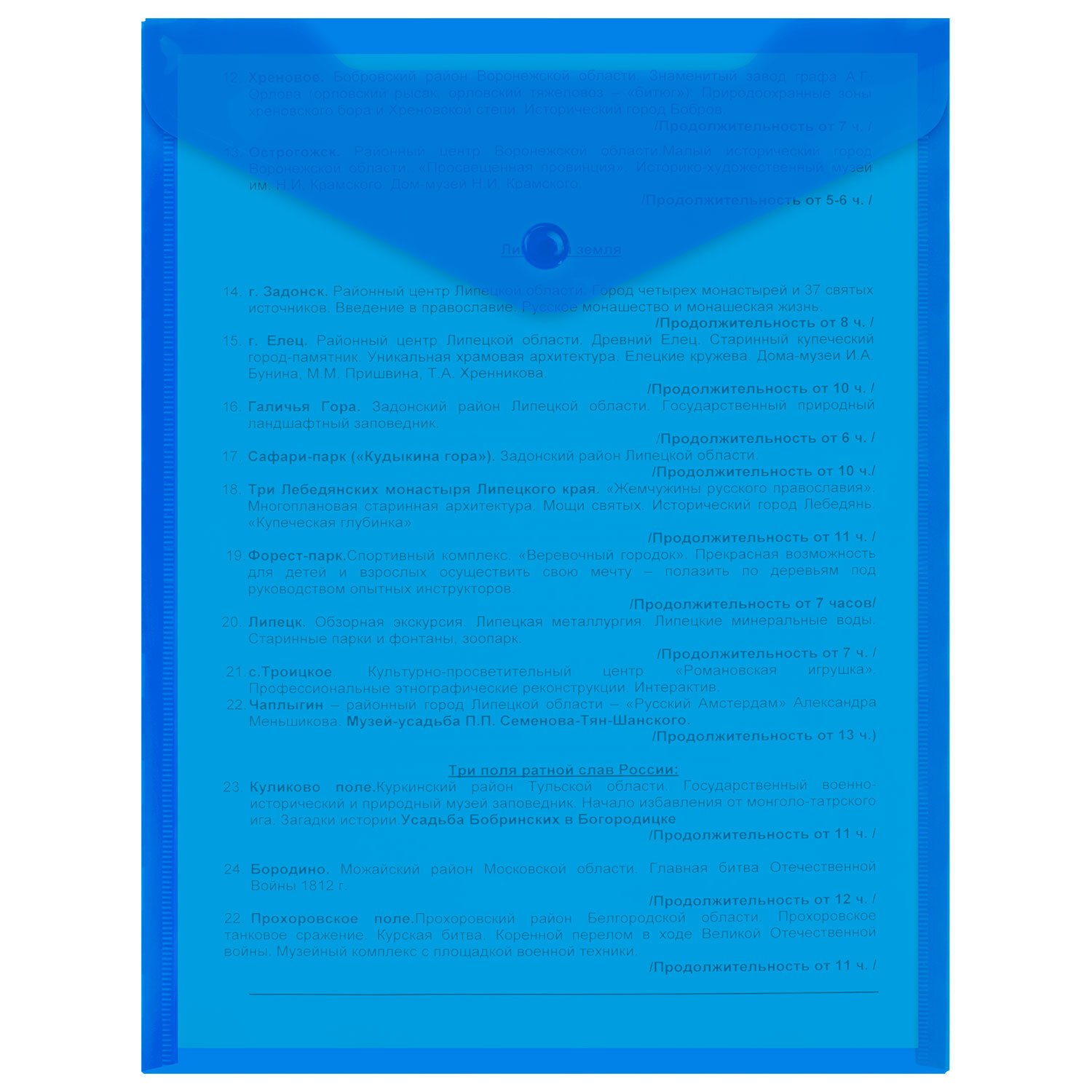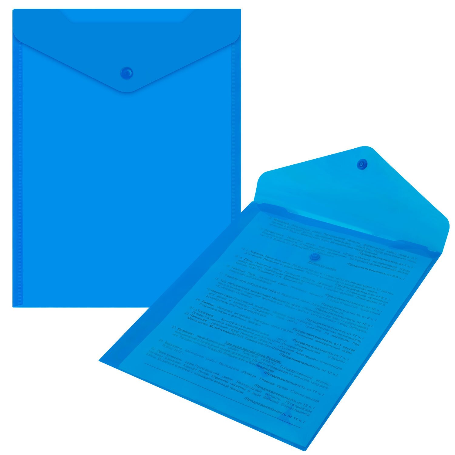 Папка-конверт с кнопкой BRAUBERG, А4, до 100 листов, прозрачная, синяя, 0,15 мм, 221637
