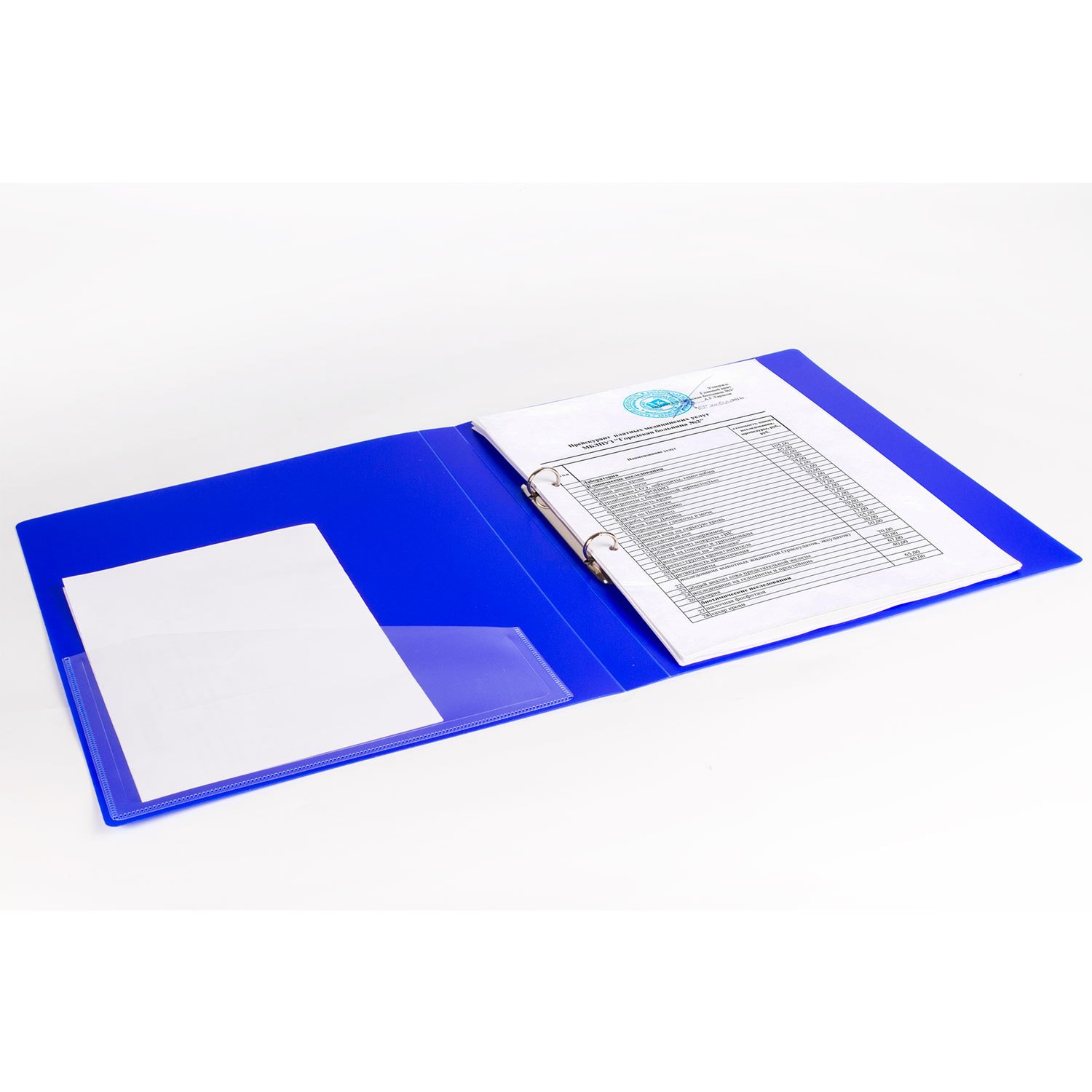 Папка стандартного формата А4 вмещает до 170 листов. Изготовлена из высококачественного полипропилена толщиной 0,7 мм с гладкой фактурой. Допускается влажная обработка поверхности. Внутренняя сторона обложки снабжена прозрачным карманом. Для идентификации имеется сменный бумажный корешок. Ширина корешка составляет 25 мм. Папка оснащена двумя кольцами, которые обеспечивают надежное хранение документов. В неё можно вставить файлы или проколотые дыроколом листы и, при необходимости, заменить их на другие.